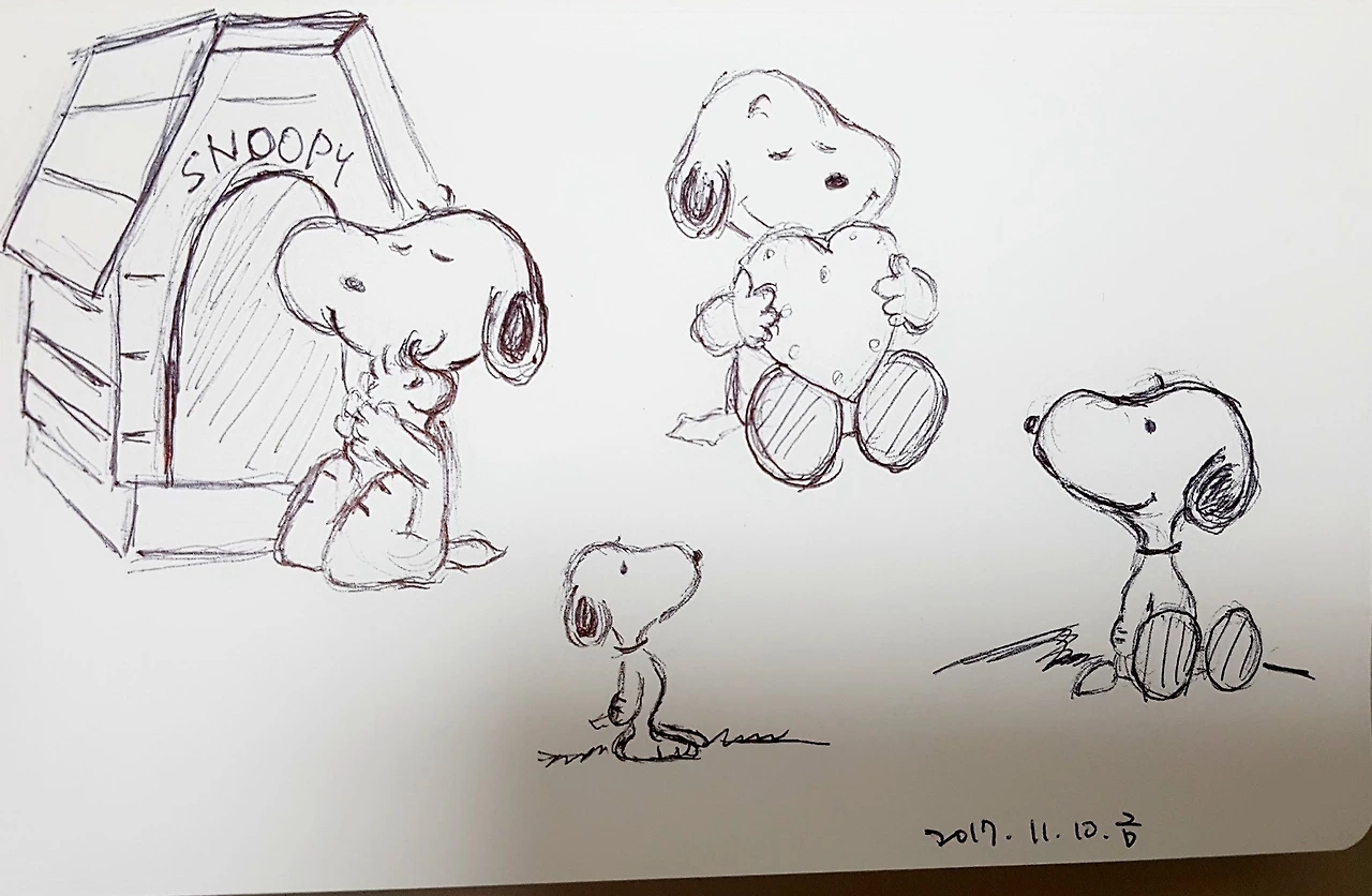 그 당시 그렸던 그림 중에 하나가 바로 스누피다.