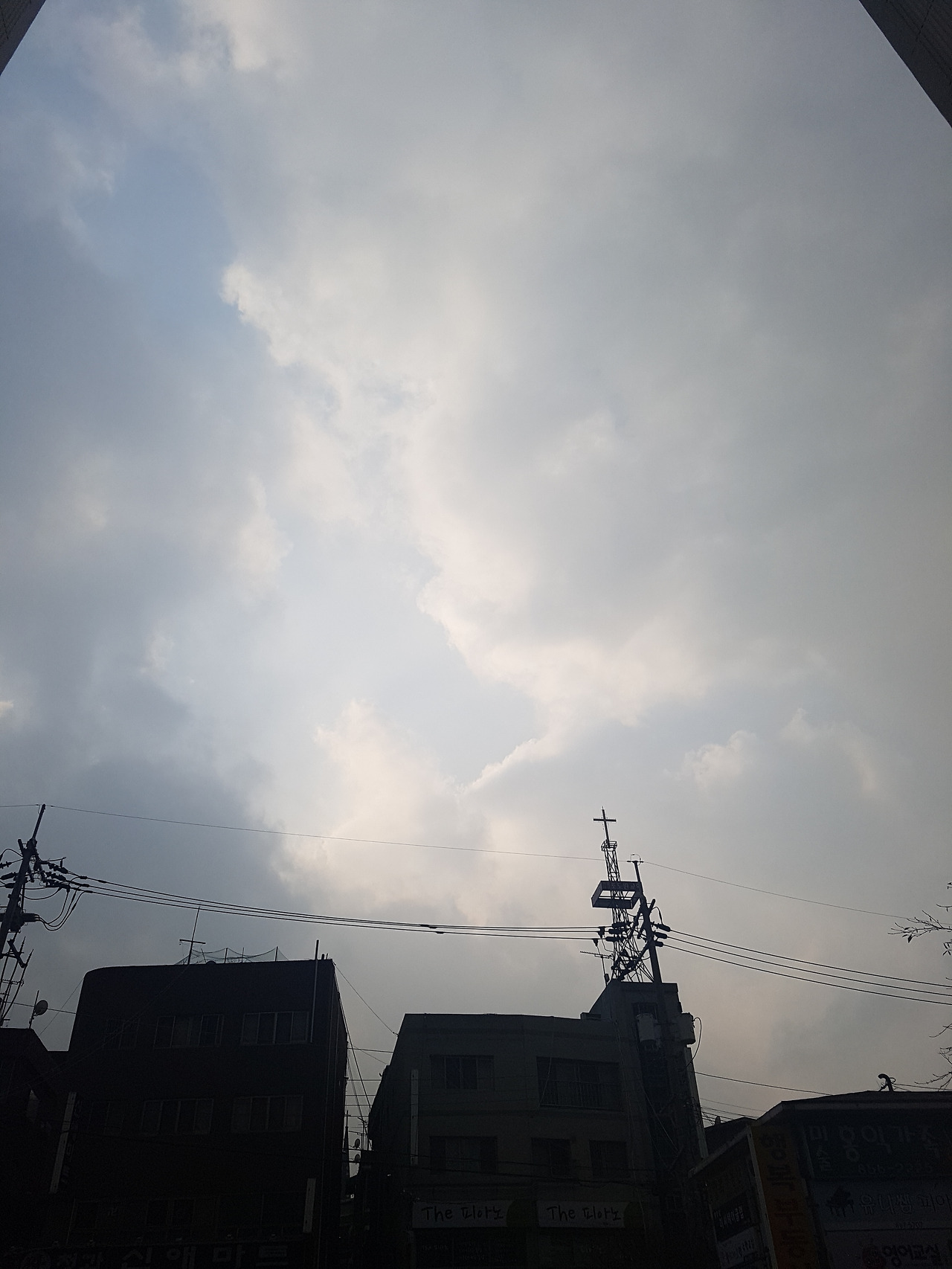 먹구름 속 희미한 하늘과 새파란 하늘