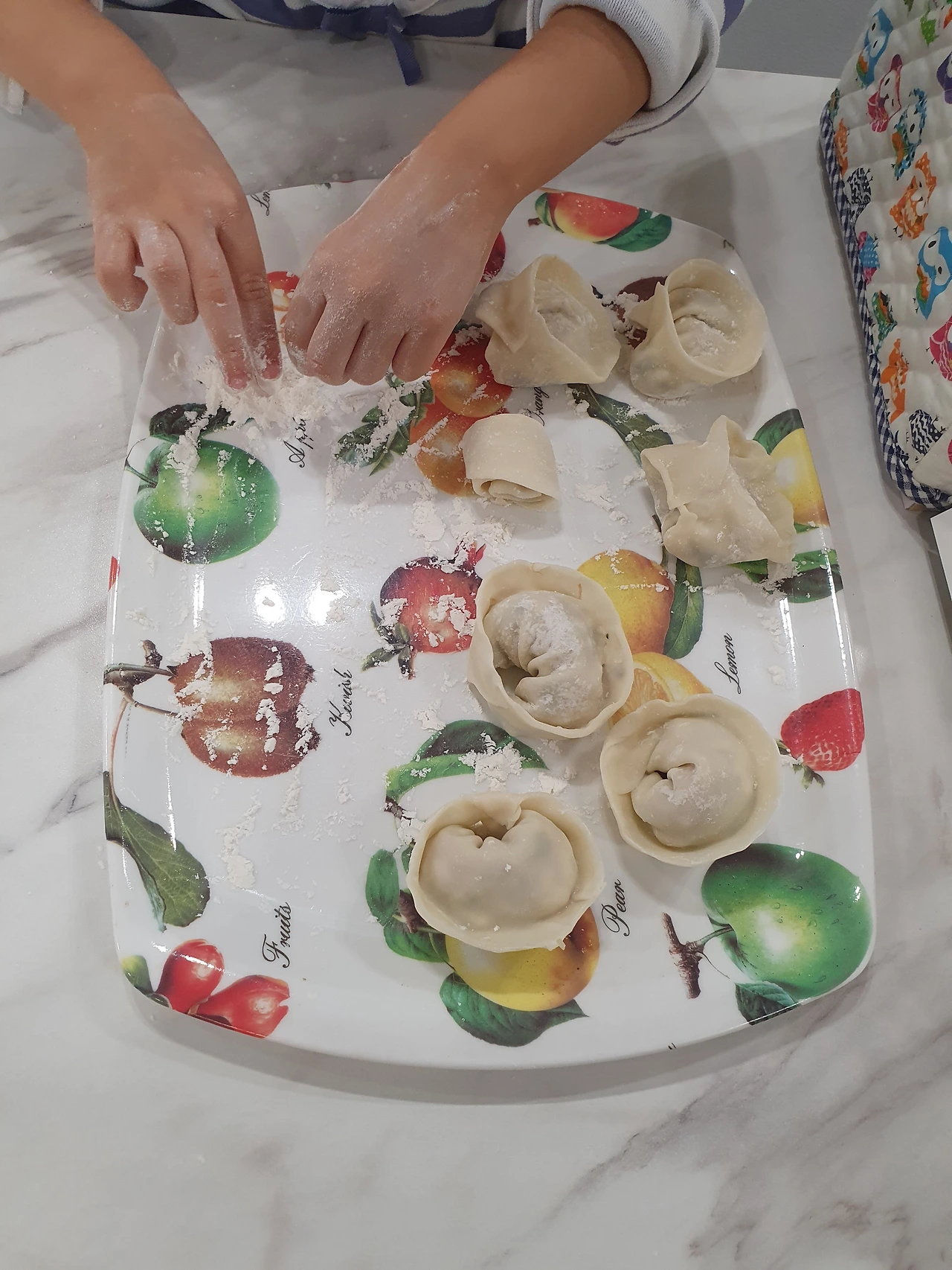 조금 손을 덜 겸 만두피는 사고, 속재료만 직접 준비했다. 몇 개 못 만들었지만, 만들어서 먹는 만두는 꿀맛이었다. 심지어는 완성하고 보면, 뭐가 잘못되었는지 옆구리 터진 녀석들도 있었는데... 아이와 함께 만드는 요리는 놀이이기도 했다.