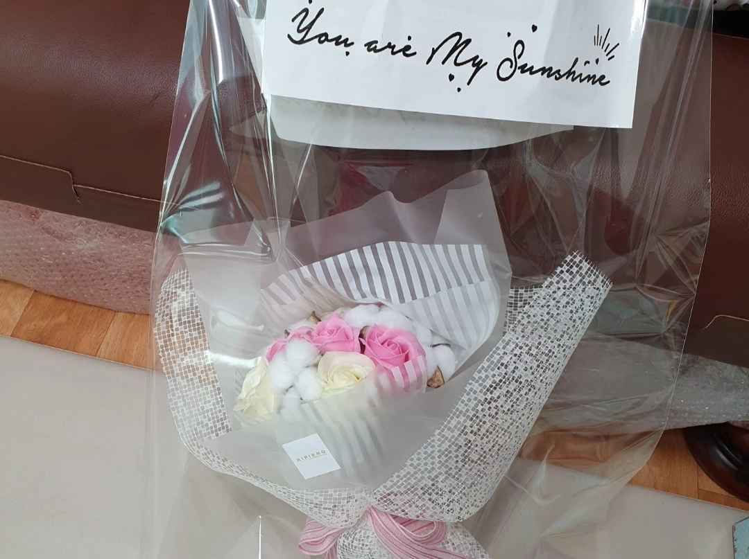 뻘쭘했지만, 그래도 기념이라고 문 앞에서 꽃 들고 사진도 찍어줬다. 사진 찍고 그런 것도 우리만 그랬다.