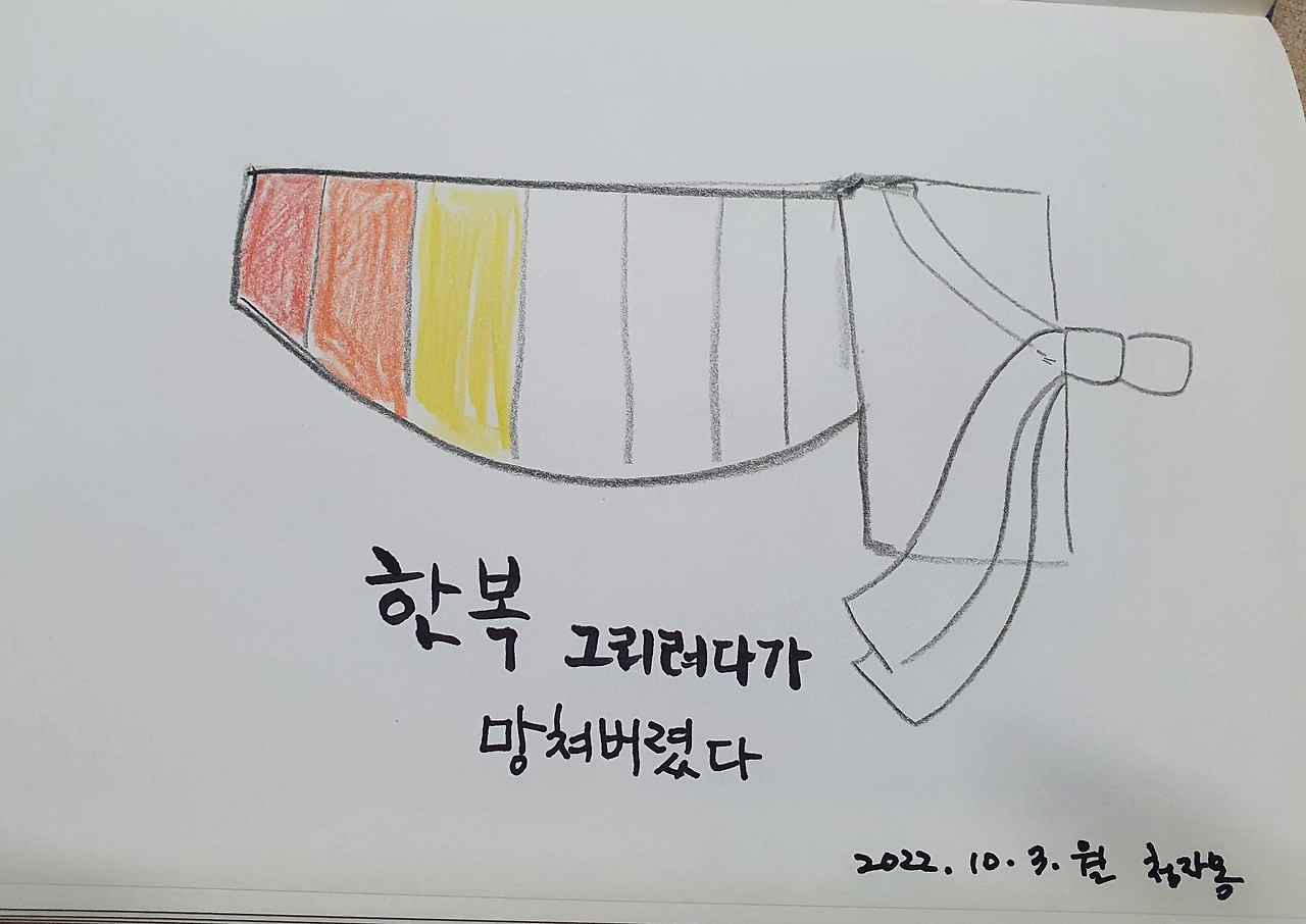 한복을 상상해서 그리다가 역시 망쳐버린 그림.