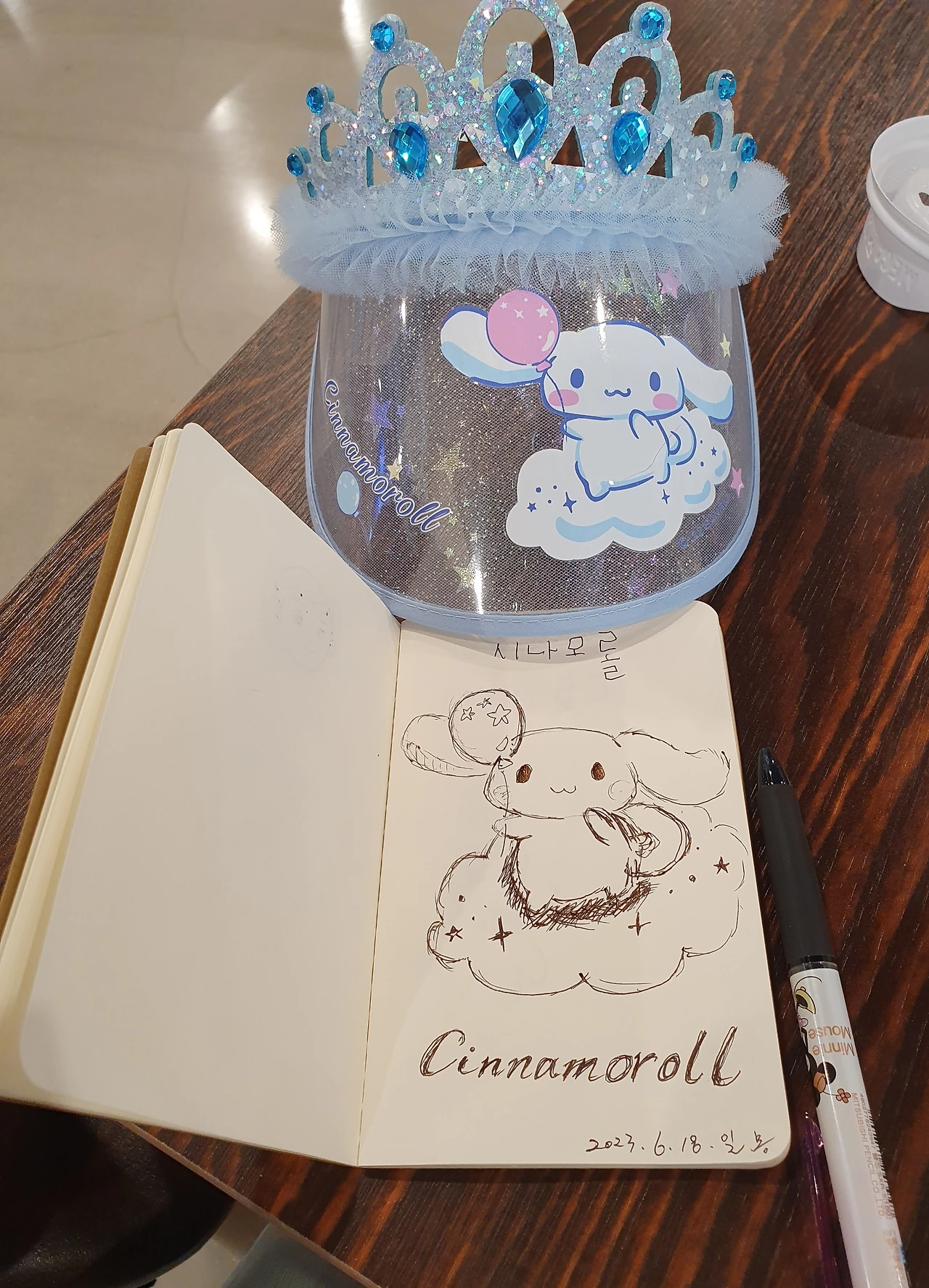 아이가 7살 때 쓰던 썬캡을 따라 그린 적이 있다. 저쪽에서 아이와 남편이 신나게 뛰어놀고, 나는 기다리면서 그렸던 그림이다.