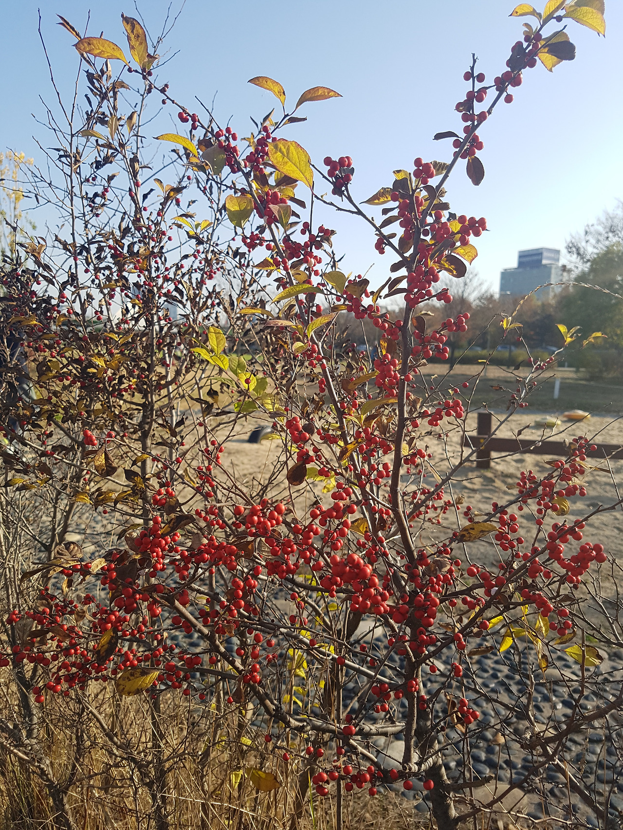 빨간 덜꿩나무 열매 이렇게 추운 겨울에도, 가끔 길 가다가 화단 같은데에 이런 빨간 열매를 보곤한다. 한동안 예쁜데 이름이 뭘까 궁금했던 적이 있었는데... 화단에서 이름 팻말을 보게 됐다. "