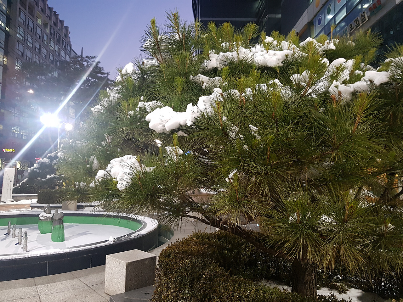쌓인 눈은 빛을 만나 멋진 작품이 되었다. : 오랜만에 정말 "쌓이는 눈"을 봤다. 밤사이 소복소복 내린 눈이 쌓여서 여기저기에 작품을 만들어놨다. 나뭇가지에 얹혀진 솜같은 눈.. 이쁘다. 지하