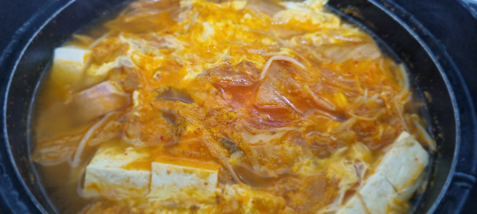 냄비에서 보글보글 끓어오르는 소리와 고춧가루가 풀리며 올라오는 칼칼한 냄새가