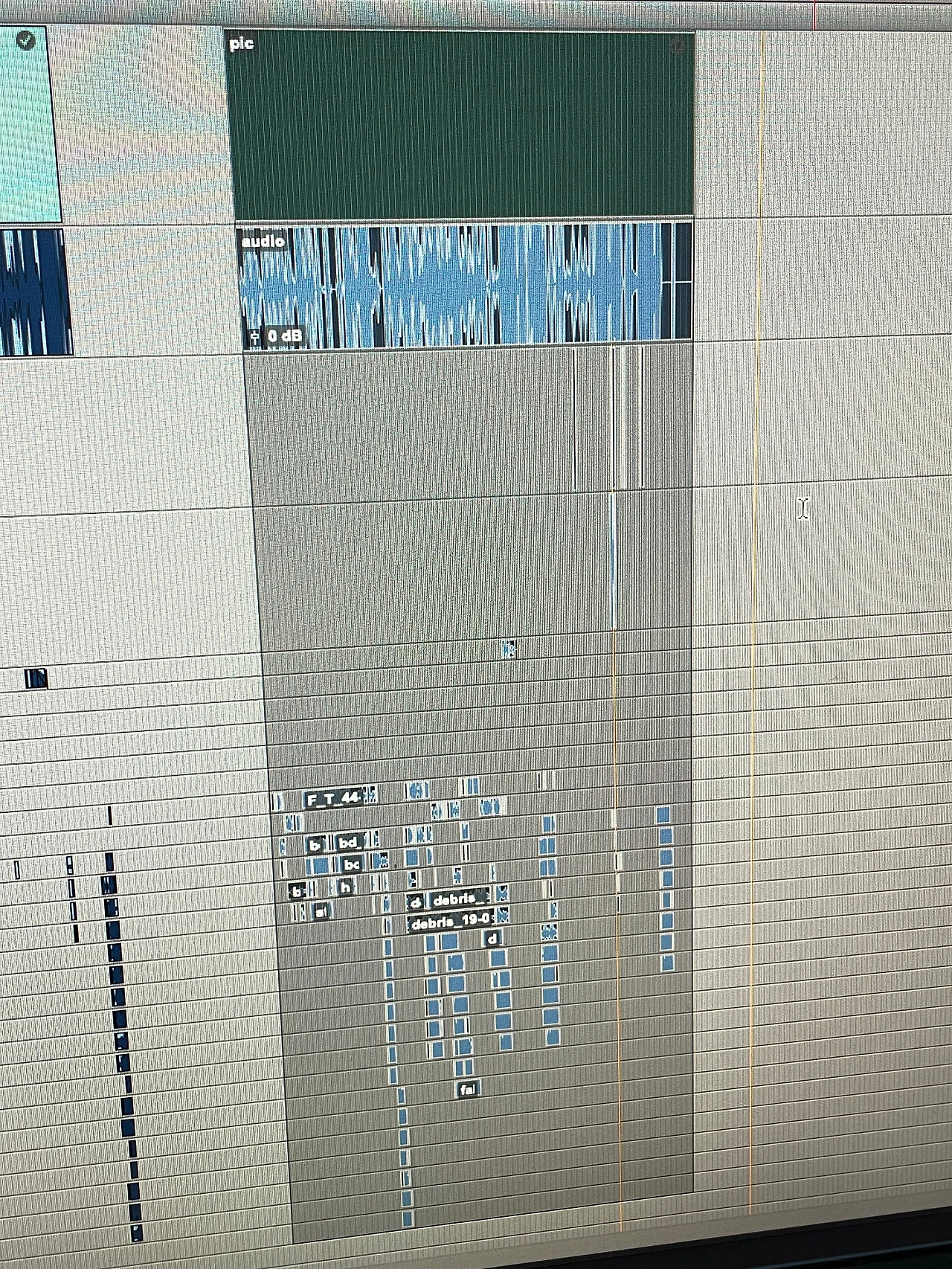 오디오 파일을 하나씩 보며 똑같은 위치에 맞추고, 그래도 맞지 않을 때는 영상의 한 프레임을 기억하여 맞춰야 하는 경우가 생기기 때문이다. 기술이 발전하여 이를 도와주는 프로그램이 있긴 하지만, 종종 하나하나 비교하며 맞춰야 하는 상황들이 생기는데, 그룹화된 파일이 옮겨지는 모습을 볼 때마다 커다란 대륙이 오랜 시간 환경의 영향으로 조금씩 잘게 쪼개져 이동하는 장면 같아 보인다.