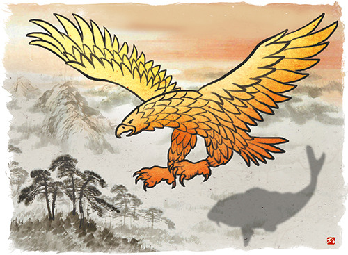 "북쪽 어두운 바다에 물고기가 있으니, 그 이름을 '곤(鯤)'이라 한다. 그 크기는 몇 천 리인지 알 수 없다. 이 물고기가 변하여 새가 되니, 그 이름을 '붕(鵬)'이라 한다. 그 등 또한 몇 천 리인지 알 수 없다. 이 새가 힘껏 날아오르면, 그 날개는 마치 하늘을 뒤덮은 구름과 같다." (『장자』, 「소요유」편, 동양고전종합DB 등에서 원문 확인 가능)