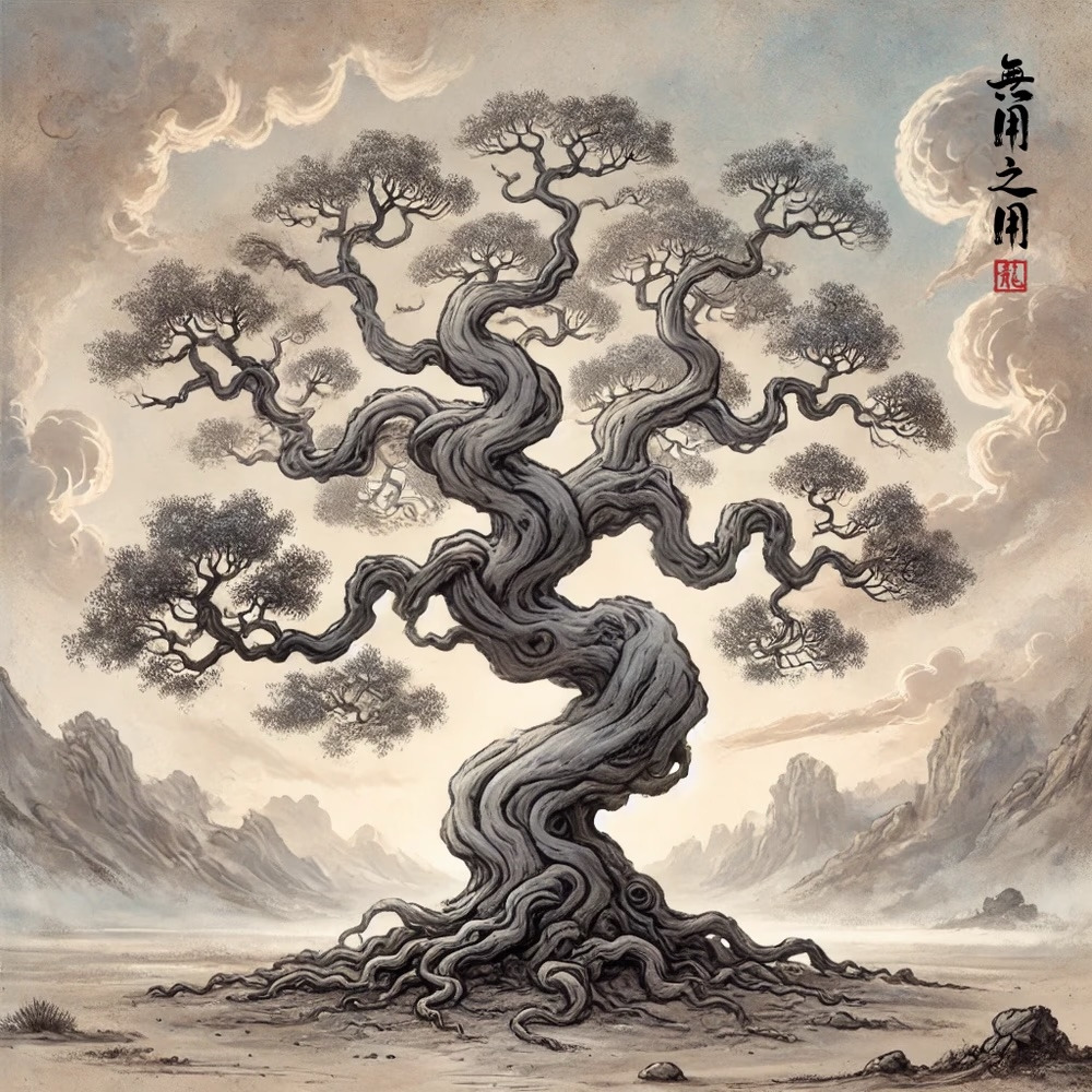 장자의 여러 편(「인간세(人間世)」, 「소요유(逍遙遊)」 등)에는 '쓸모없는' 거대한 나무 이야기가 반복해서 등장합니다.