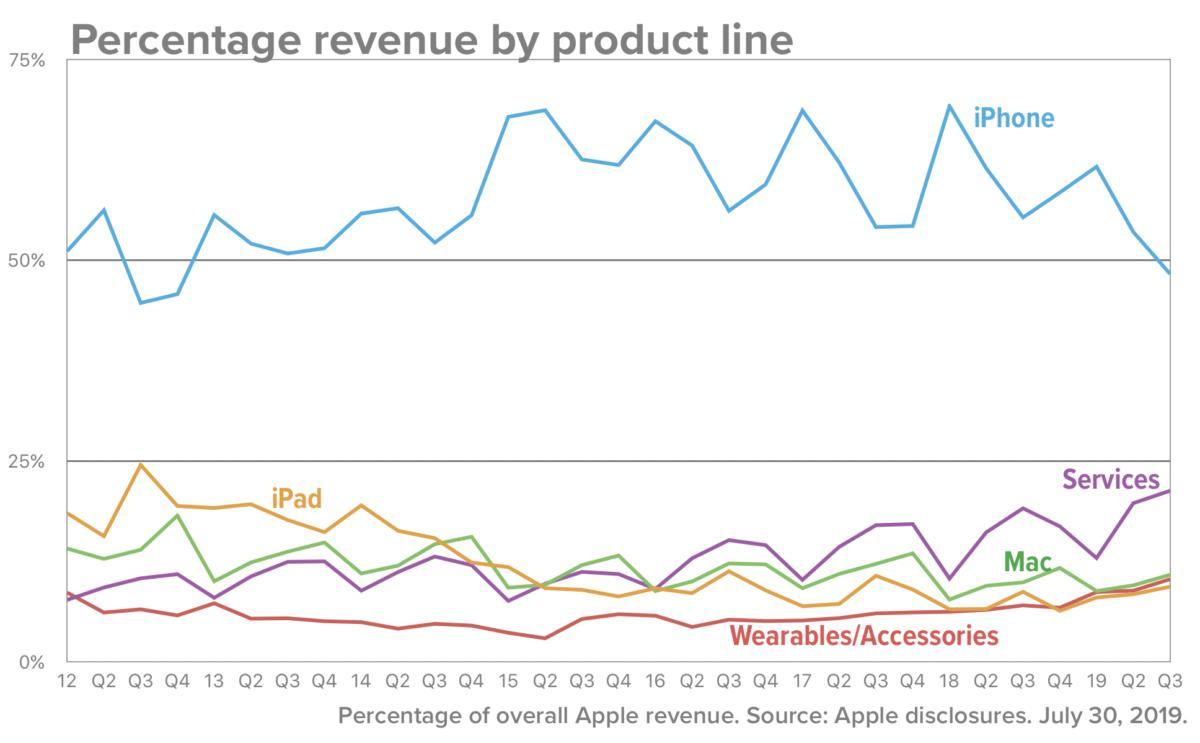 1. 아이폰 비중이 다시 50%를 넘은 건 독이 될 수 있다.