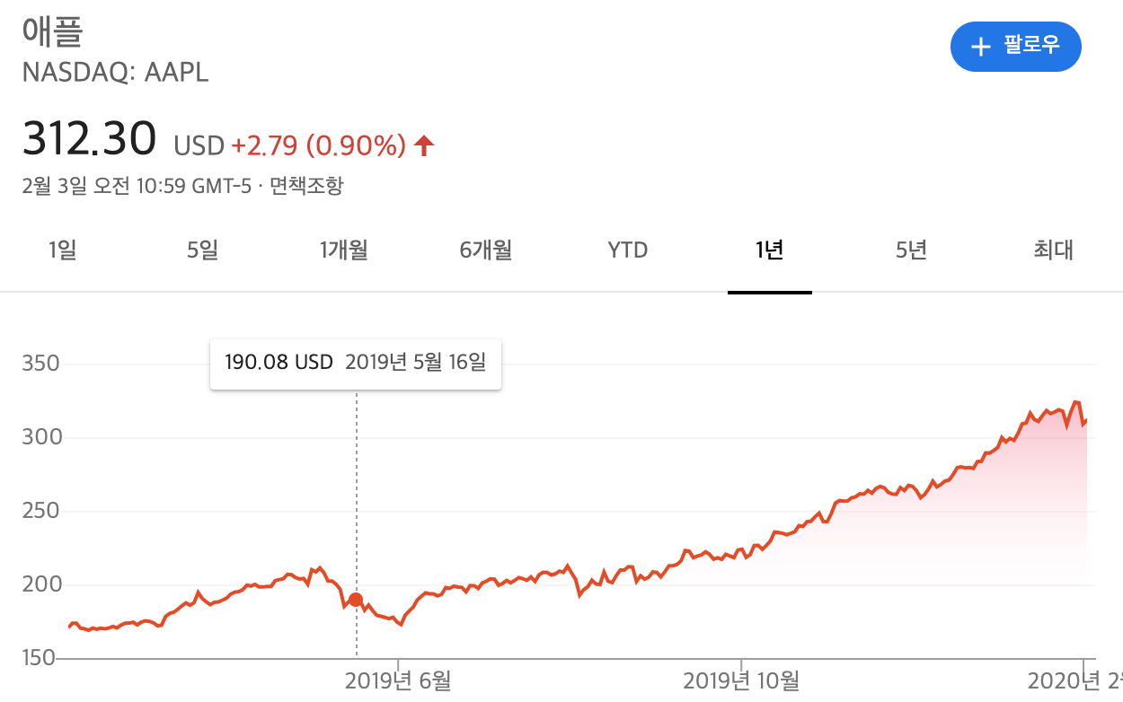 애플의 분기 실적이 발표됐다. 시장의 예상치를 가뿐하게 뛰어넘는 실적. 역시 애플... 배가 조금은 아프다. 작년 아주 소량이긴 하지만, 애플 주식도 테슬라 주식도 아닌 삼성전자 주식을 주력으로 매수했기 때문이다. 뭐, 지금은 코로나 바이러스 이슈가 터지면서 너나 할 것 없이 모든 주식이 숨고르기를 하고 있지만(여전히 테슬라는 미친듯이 오르고 있다) 지금이라도 애플 주식을 사두는 게 좋을 것이라는 이야기를 주변 사람들에게 종종 듣곤한다.