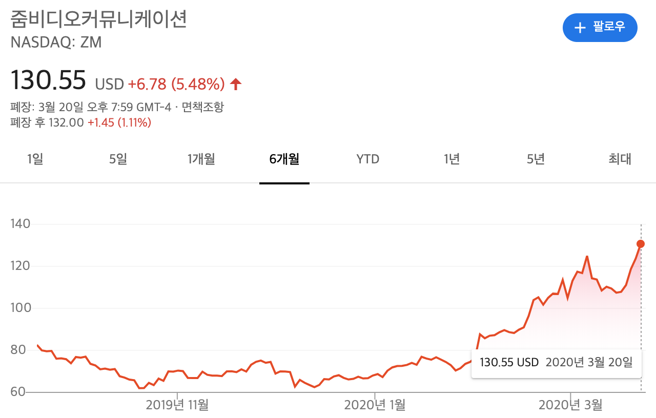 코로나 속에서 가장 주목받고 있는 교육 업체로 보인다. 사실 교육 업체라기보다는 화상 회의 및 교육 솔루션 업체로 보는 게 맞는 것 같다. 스카이프나 구글 행아웃과 비슷한 솔루션으로 보면 될 것 같은데, 다양한 활용성, 그리고 영상 퀄리티와 안정성 면에서 줌이 좀 더 좋은 평가를 받고 있는 것 같다.