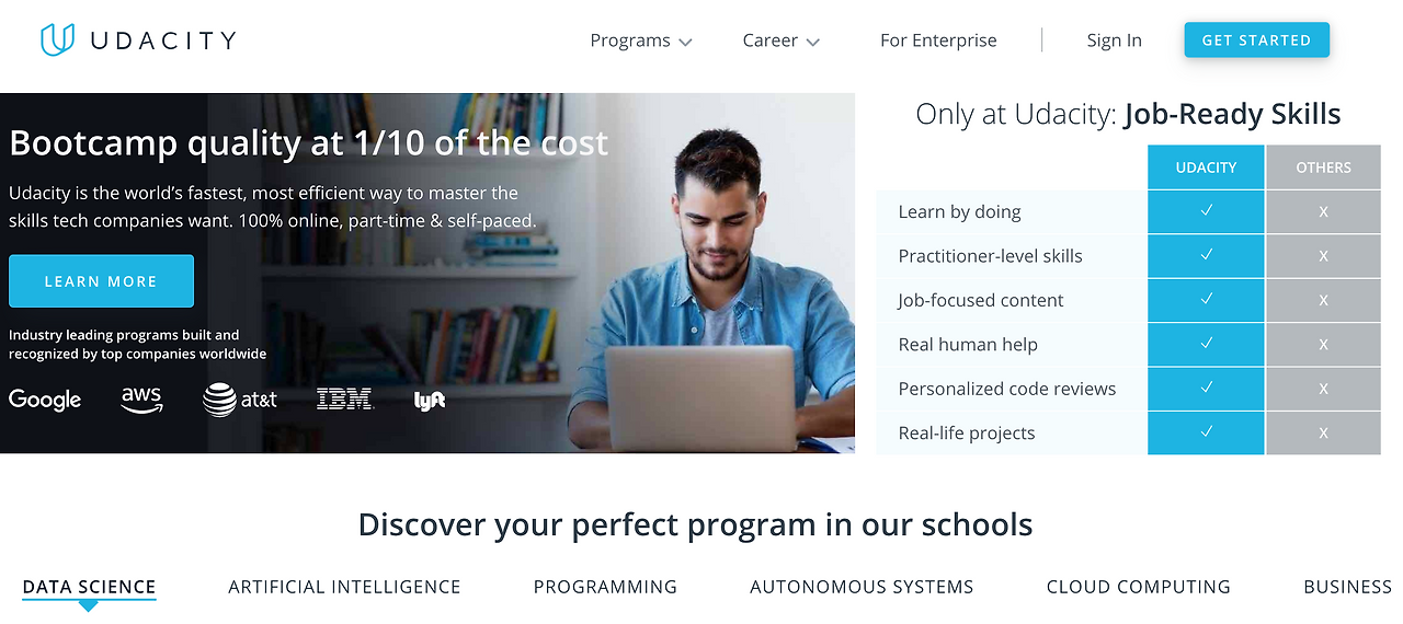 어쨌든, '동영상만으론 부족해요'라는 이런 흐름에서 최근 주목할만한 시도를 하는 곳들도 보인다. 특히 오프라인 실무교육 중심이었던 패스트캠퍼스는 새롭게 '바이트 디그리'라는 과정을 밀고 있는데, 결국 핵심은 동영상 강의에 프로젝트 수행을 붙여서 차별화를 가져가려는 것으로 보인다. 해외에서는 이미 '나노 디그리(Nano-degree)'로 유명한 유다시티(Udacity)가 비슷한 콘셉트로 성공한 사례가 있다.