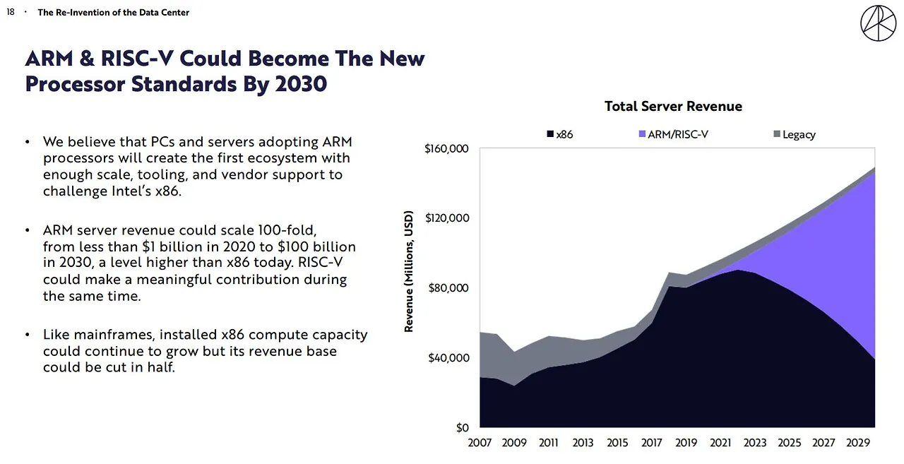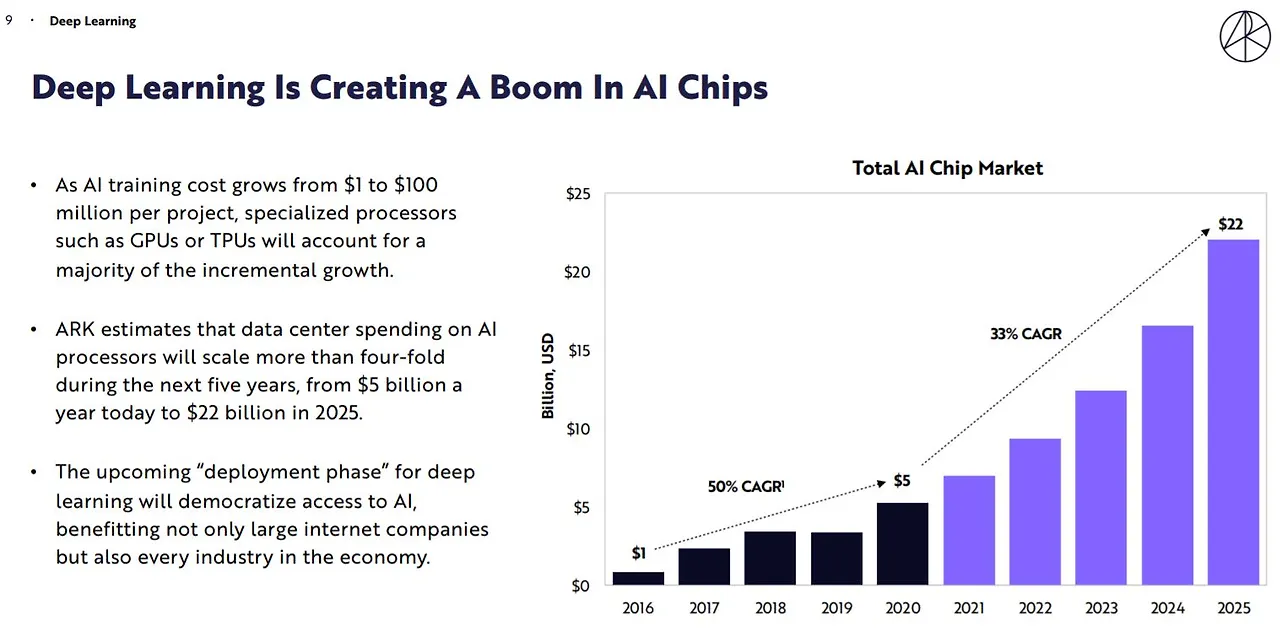 보다시피, 1번 픽이 바로 '딥러닝'이다. 자료를 보면 1번 픽으로 딥러닝을 올린 건 엄청난 성장성 때문이기도 하겠지만, 맥락상 1순위의 딥러닝이 나머지 14가지 아이디어에 무언가 중요한 역할을 할 수 있기 때문으로 읽힌다. 특히, 인텔의 몰락을 예견하는 두 번째 아이디어 The Re-Invention of the Data Center는 일정부분 딥러닝과 GPU의 나비효과 같다는 생각이 들었다.