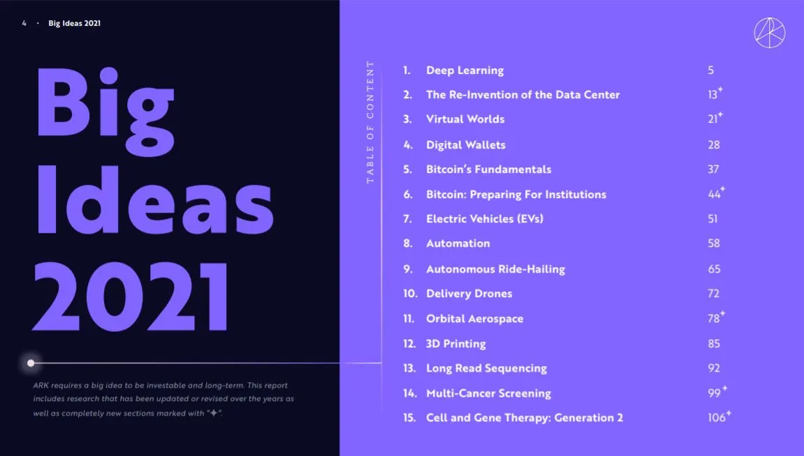 얼마전 메일함에 도착한 Catherine Wood, 그러니까 아크 인베스트에서 보낸 "Big Ideas 2021"도 그런 자료 중에 하나였다.