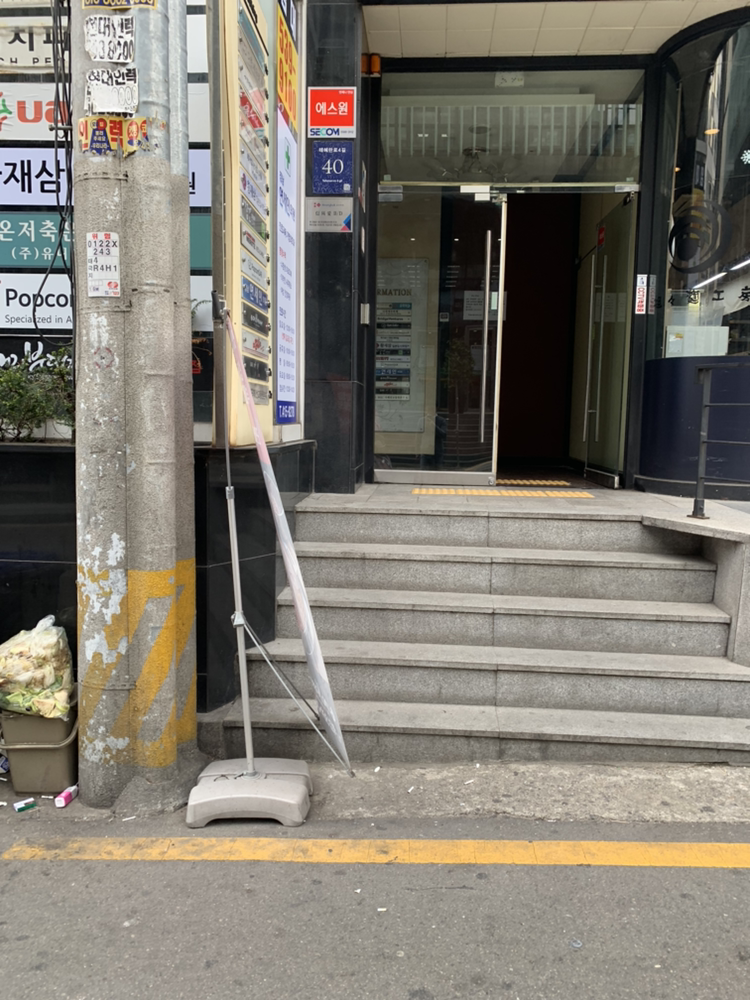 강남역의 수많은 건물들은 대부분 입구에 계단이 없거나, 있더라도 서너 계단으로 된 게 대부분이다. 때로 언덕에 있는 건물의 경우에는 입구에 꽤 긴 계단이 있기도 한데, 그럴 경우 너비가 좁고, 높이는 가파른 계단이 대부분이다. 빨리 여기로 들어오라고 재촉하는 듯한 모습의 계단이 대부분인 것이다.