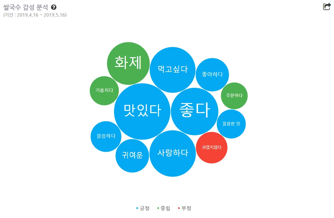 쌀국수는 긍정 감성의 키워드가 대부분이다. 그건 쌀국수가 한국에서 더 이상 낯설지 않은 안정이 된 메뉴라는 걸 뜻한다. 이 분석을 그대로 마라탕에 적용하면, 마라탕은 아직 한국에서 낯선 그러니까 불안정한 메뉴라는 뜻이 될 것 같다.