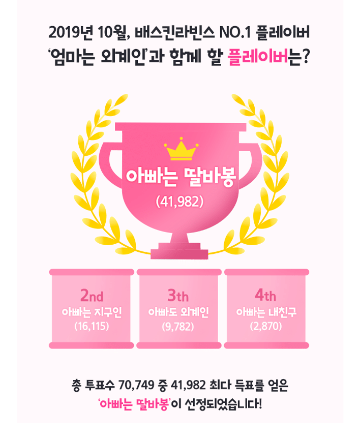배스킨라빈스의 신제품 "아빠는 딸바봉"이 인기몰이를 하고 있다. 출시 3주 만에 싱글레귤러 컵 기준 100만 개를 넘게 판매했다고 한다. 출시하자마자 배스킨라빈스 아이스크림 종류 가운데 당당히 월 판매량 2위... 그럼 1위는? 역시, 엄마는 외계인이다. 그렇다. 아빠는 2등이다. 아무리 딸바보라고 해도..