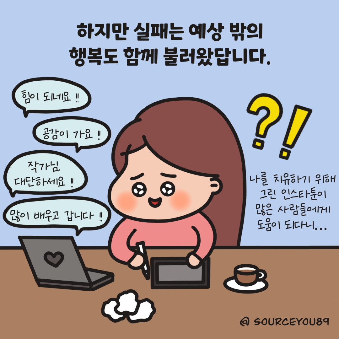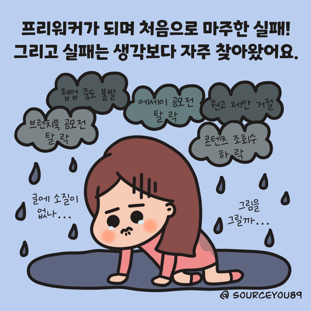 회사원 시절까지 실패를 피하기 위해 애썼다면 프리워커인 지금은 실패를 최대한 마주하려 노력한답니다. 저에게는 아직 수많은 실패의 기회가 남아있거든요!