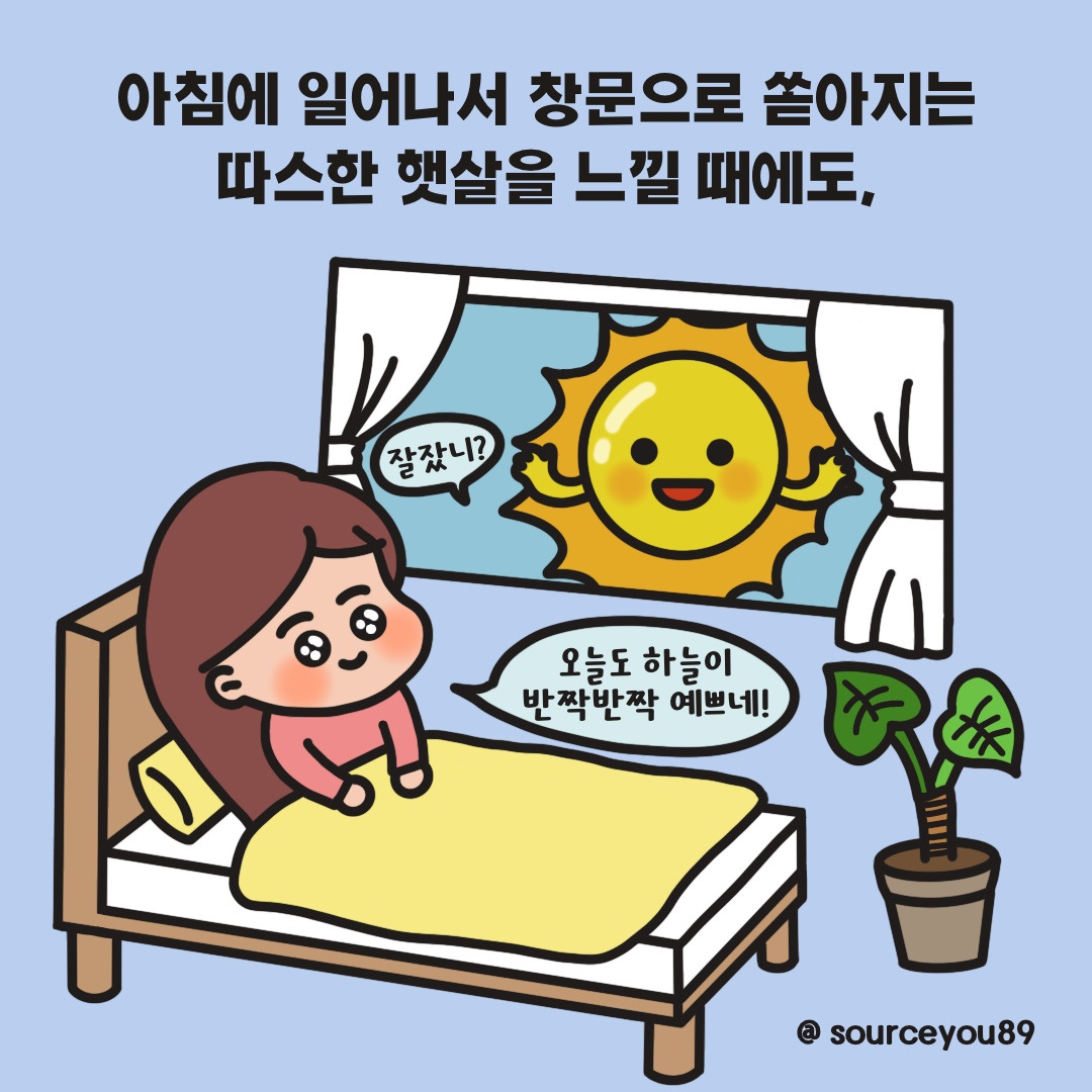 과거에는 주말만 기다리며 시간이 빠르게 흐르길 원했는데, 지금은 흘러가는 시간이 아까워서 붙잡고 싶은 마음이에요 :) 말그대로 생생하게 살아있음을 느끼는 요즘이라 하루하루 신기하고 행복해요.