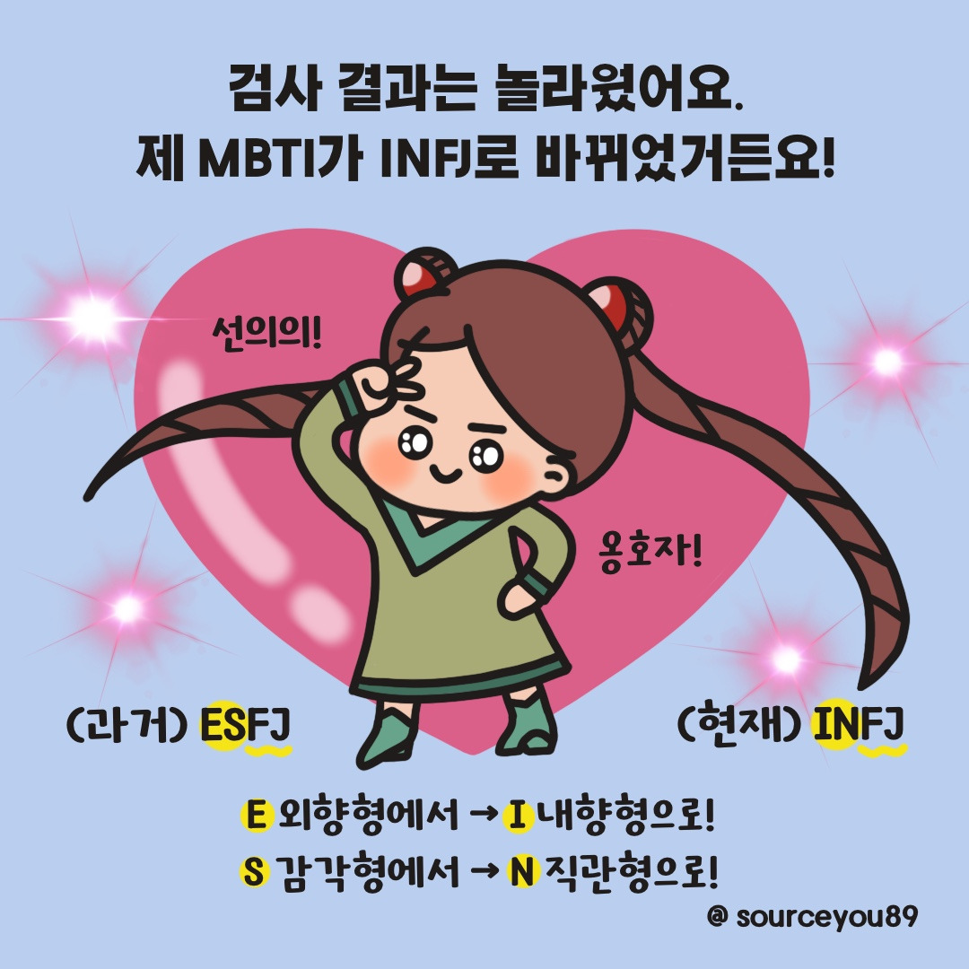퇴사 후 깜짝 놀랐던 변화들 중 하나는 MBTI 입니다. 여러 번 검사해 봐도 항상 ESFJ였는데, 퇴사 후 1년 만에 INFJ로 바뀌었어요!