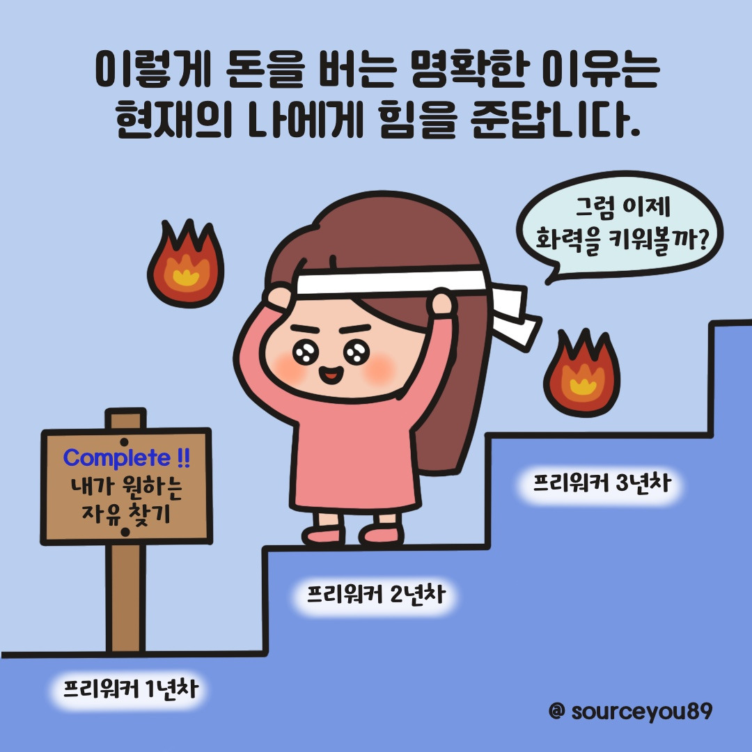 그래서, 돈을 법니다. ’목적‘이 아닌 ’수단‘으로서 말이죠. 그래서, 돈을 버는 과정이 힘들어도 언제나 행복해요 :) 프리워커로 돈을 버는 방법에 대한 콘텐츠를 기획하다가, 돈을 버는 이유가 반드시 선행되어야 한다고 생각했어요.