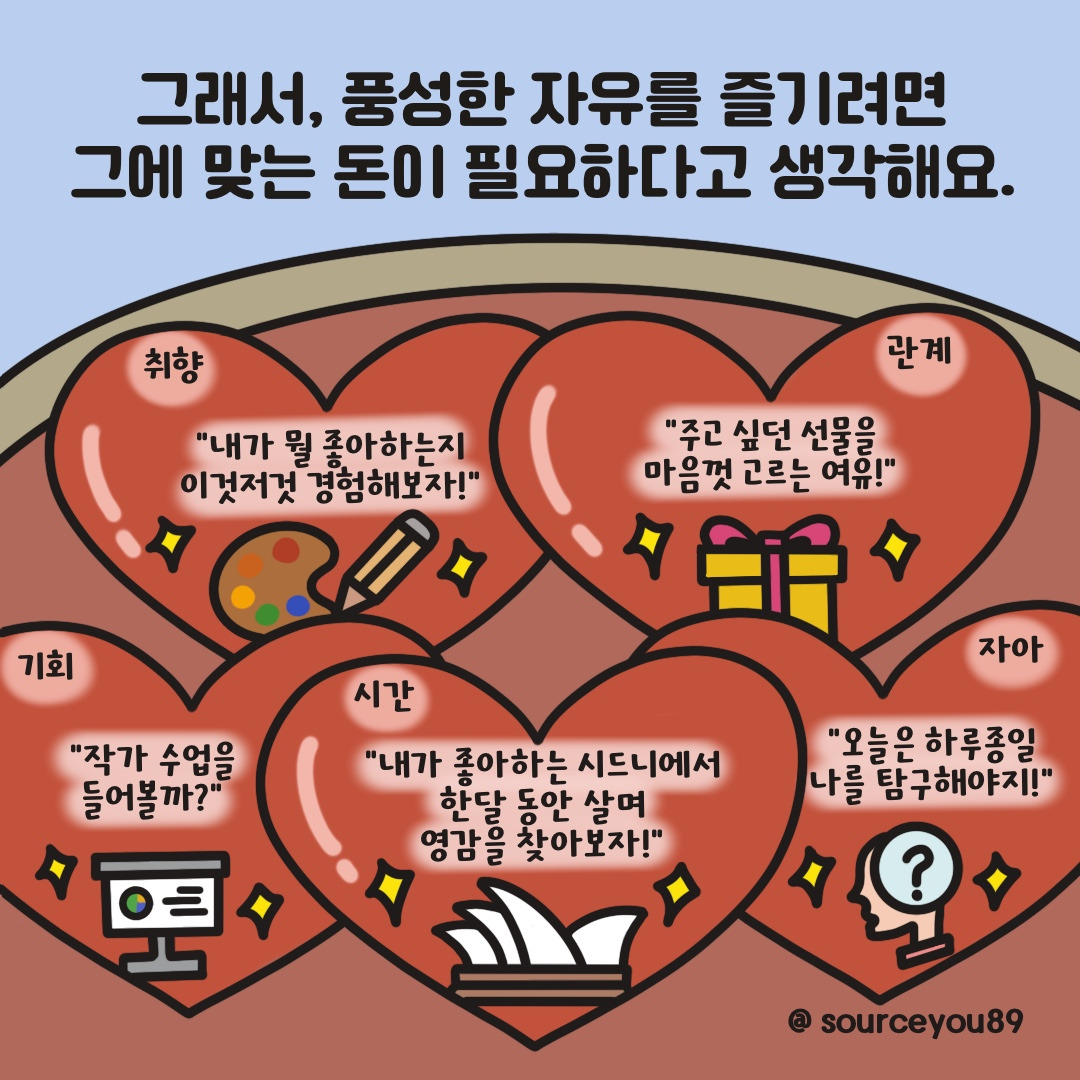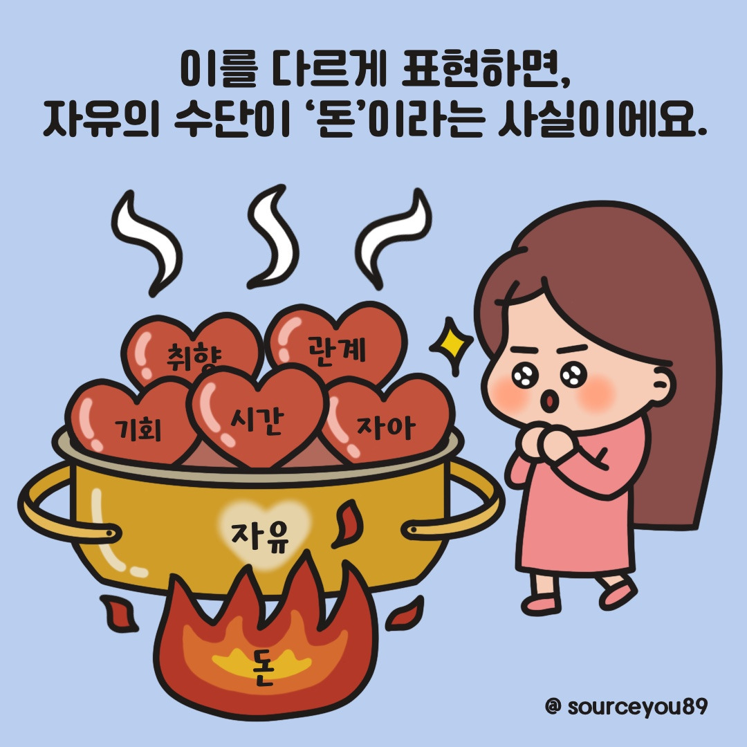 인생에서 가장 중요한 가치를 ’자유‘로 여기는 저는 자유, 정확히 표현하면 그 속에 담긴 ‘시간, 기회, 자아, 취향, 관계’ 등을 풍성하게 누리고 싶어요.