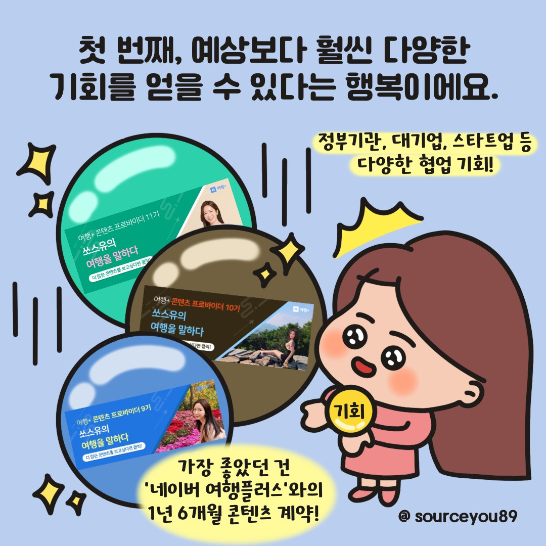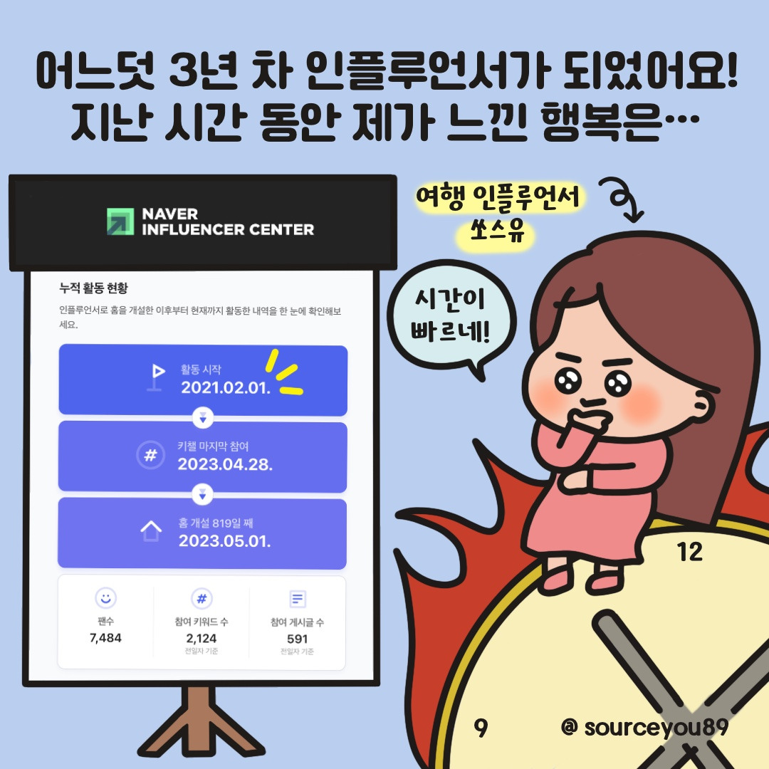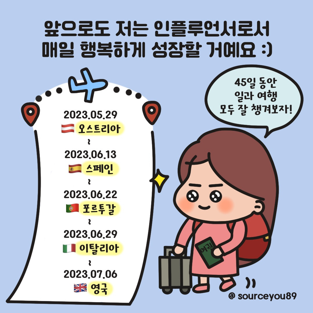 퇴사 전부터 지금까지 N잡러로 활동하는 중이지만, 그중에서도 저를 대표하는 수식어는 인플루언서에요. 여행 인플루언서라는 타이틀만 갖은 채 대기업 퇴사를 행동으로 옮겼으니까요 :)