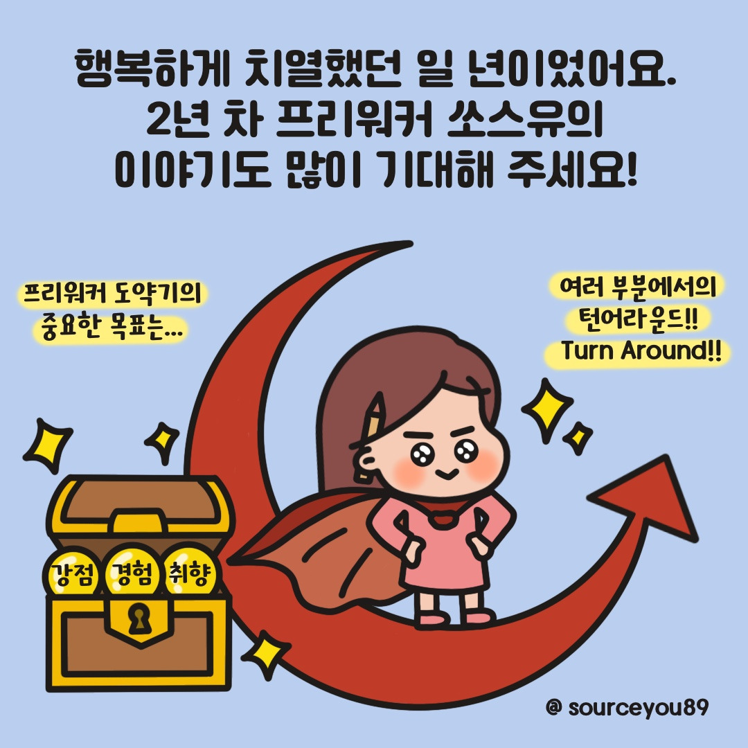 프리워커 도약기에 접어든 2년 차 이야기, 저조차 어떤 내용이 담길지 궁금하네요! 여러분도 저와 함께 기대해 주실 거죠?♥︎