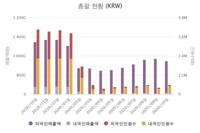 ✭ 코로나 19(COVID-19) 장기화에 외국인 매출이 줄어든 탓이다.