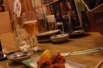 안주는 문어 튀김, 맥주는 두 잔 마셨다.