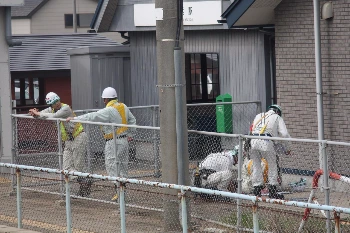 철도 건너편에 전철 기다리는 부스가 보였다.
