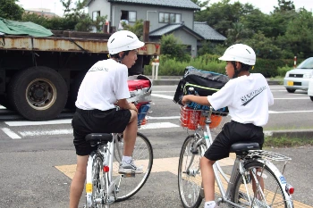자전거 탈 때는 안전을 위해서 헬멧을 써야 한다.