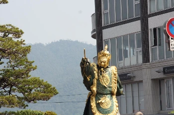 저 황금 가면을 쓴 동상은 뭘 하고 있는 거지.