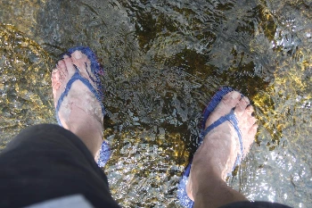 맑은 물에 발을 담갔고, 사진을 찍었다.