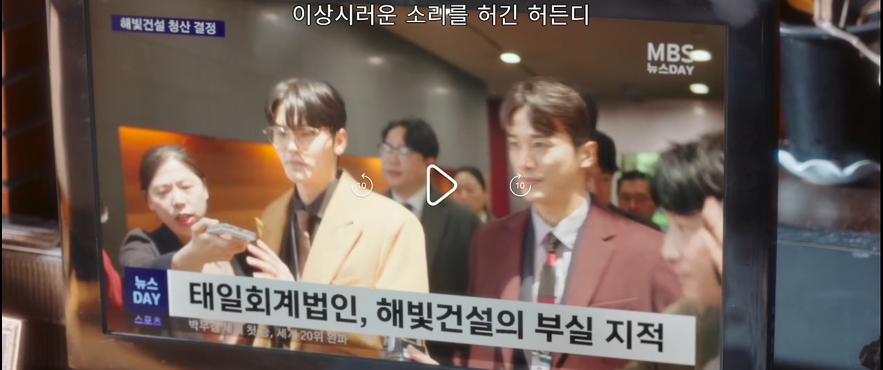 1화에서 가장 오글거렸던 장면. 해빛건설이 공사 중이던 건물을 철거하려는 용역깡패들과 장호우가 뒤엉켜 싸우고 있는데, 어디선가 멋지게 등장한 한승조 회계사가 "그만!!!"을 외친다. 그러자 마치 바다가 갈라지듯 용역깡패들이 각 잡고 길을 터주며 현장이 정리된다. 회계사가 청산결정된 회사를 다시 찾을 일도 없다만, 회계사가 용역깡패를 부를 일은 더더욱이 없다. 저기 가면 두들겨 맞기나 하겠지... 저길 왜 가...