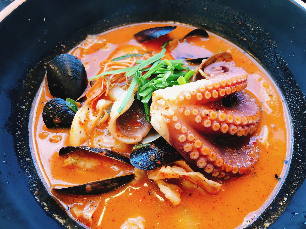 * 문어탕면: 짬뽕보다는 가볍고 라면보다는 무거운 맛이다. 문어와 해산물이 적당히 들어있고, 기본 상차림도 예쁘게 나온다. 바닷가를 보며 혼자 차분히 밥을 먹기에 좋은 곳이다.