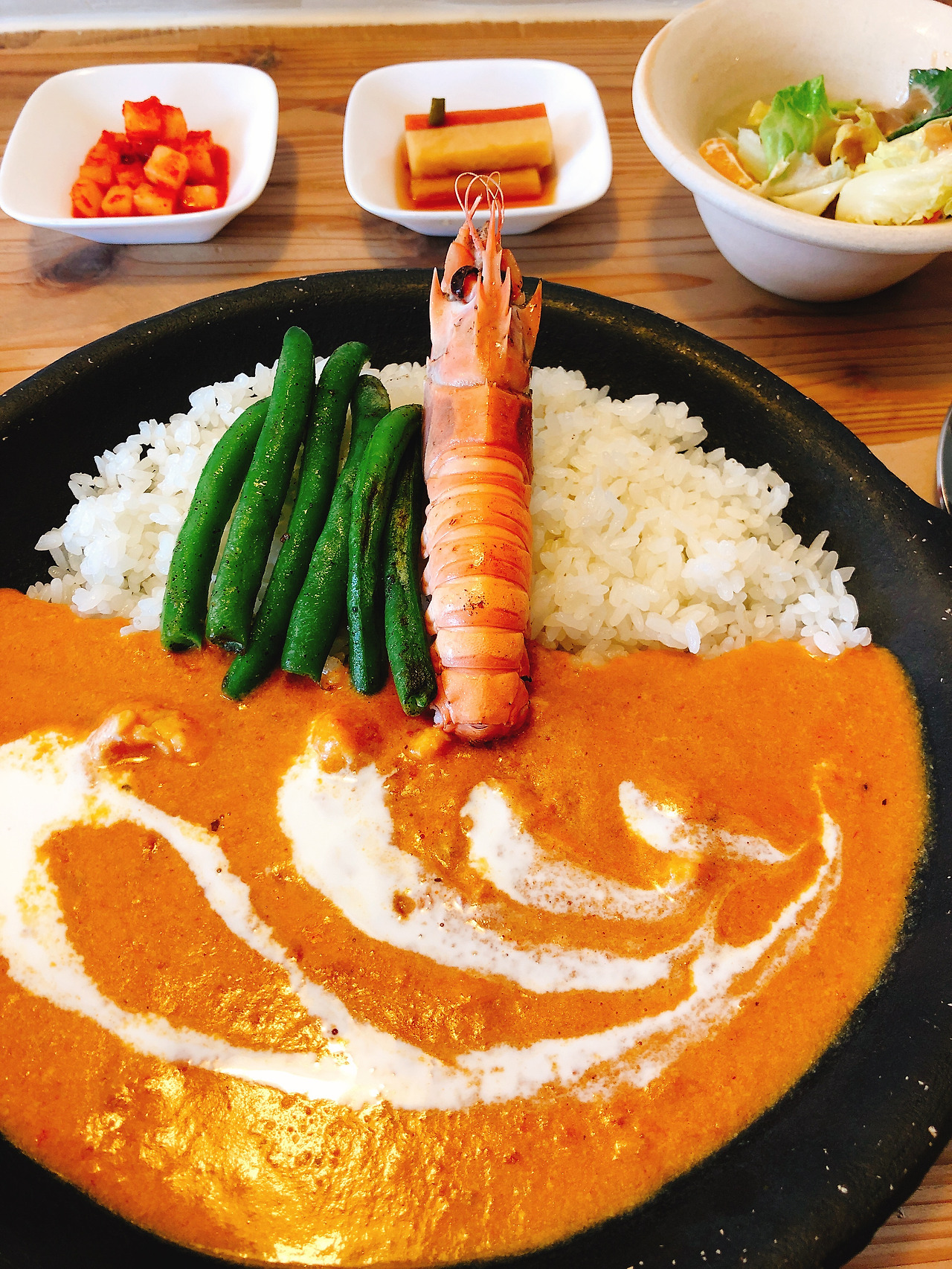 * 딱새우커리: 토마토 커리 맛이 나며 보이는 딱새우가 다가 아니라, 커리 속에도 딱새우의 살이 들어있다. 새콤하며 달달한 맛이 일품이다.