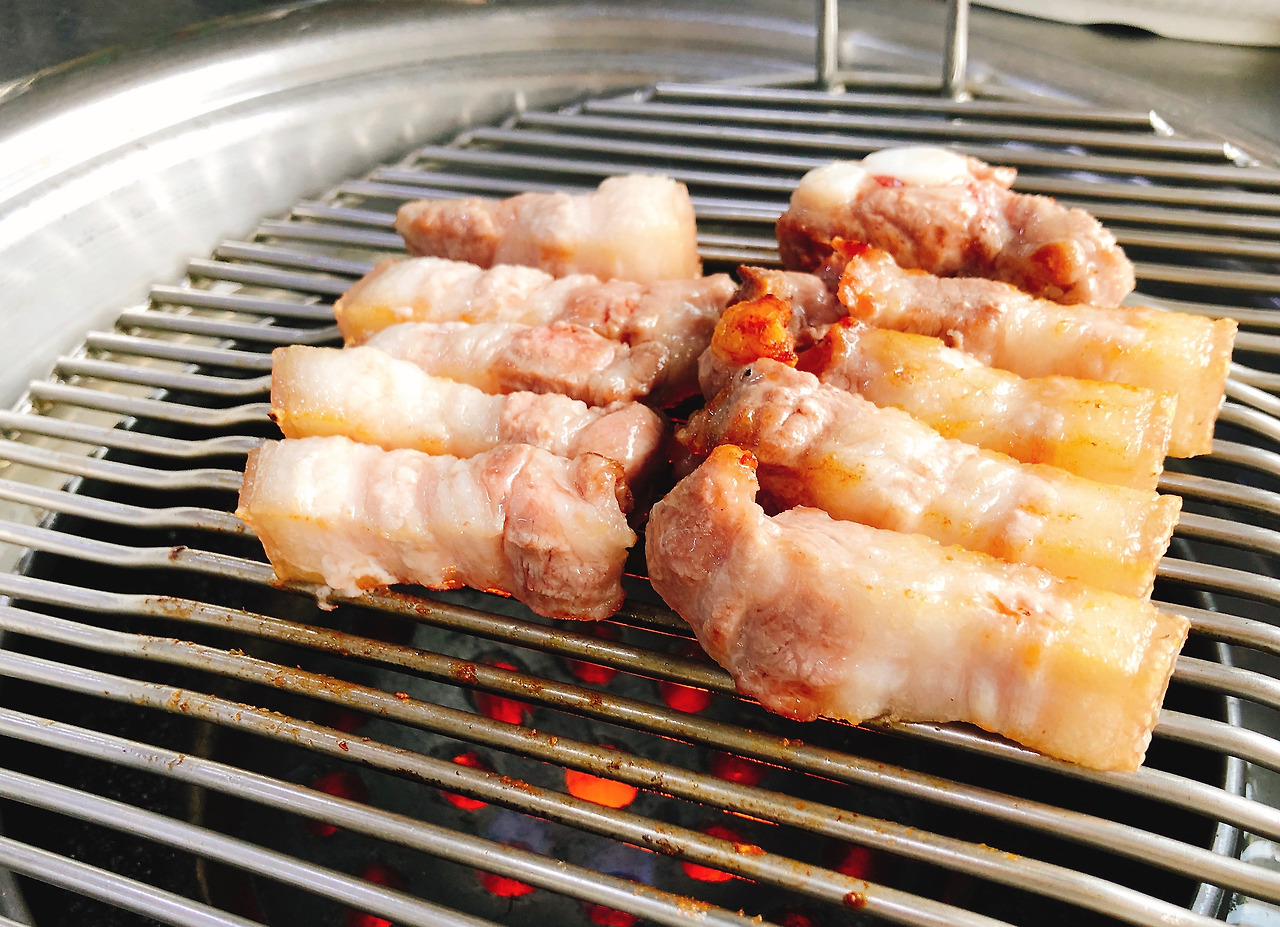 * 흑돼지 오겹살: 두툼한 고기 한 점을 씹으면 적당히 붙어있는 비계의 식감이 쫄깃하고, 고기에서 흘러나오는 육즙이 얼굴에 미소를 짓게 한다. 기본 상차림도 만족스럽고 김치찌개에도 고기가 꽤 들어있다.