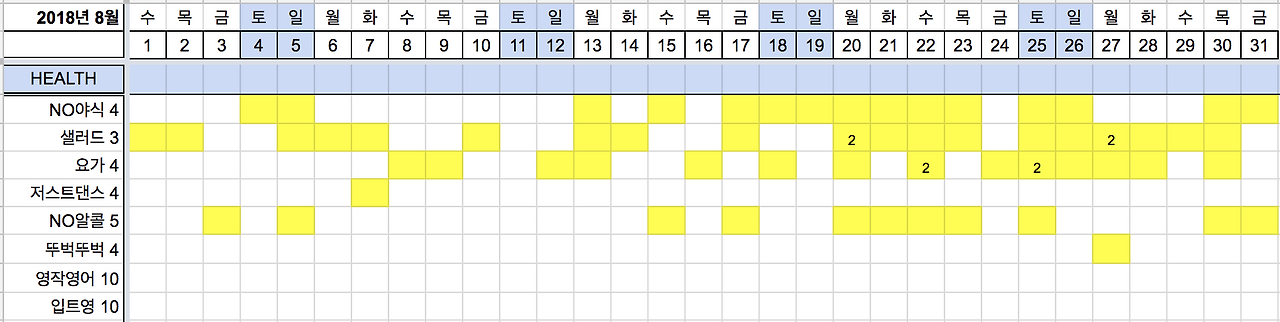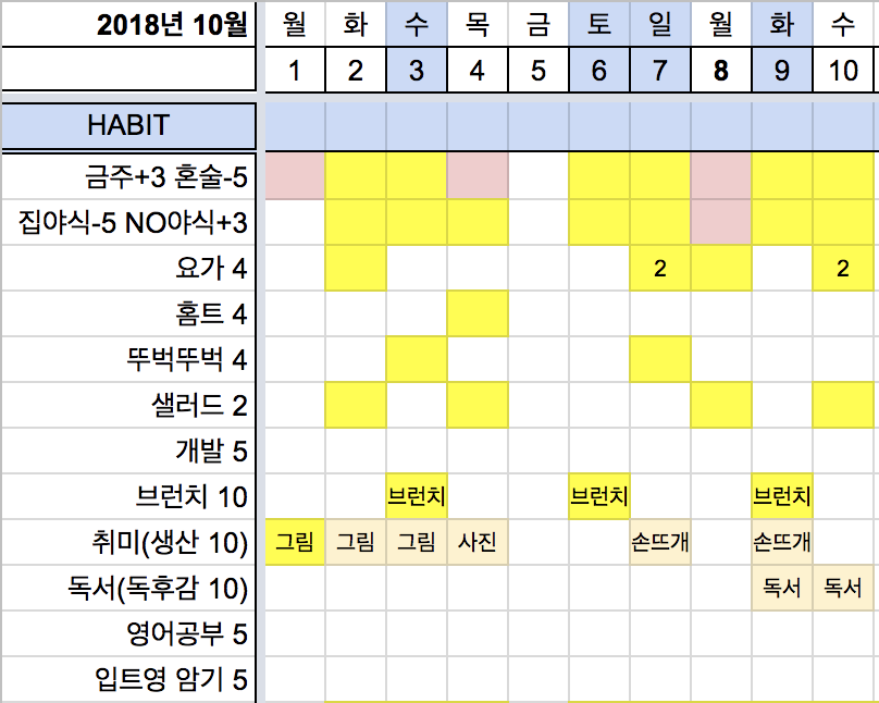 매월 과제가 달라지지만 기본적으로 체크하는 습관들에는 이런 것들이 있다.