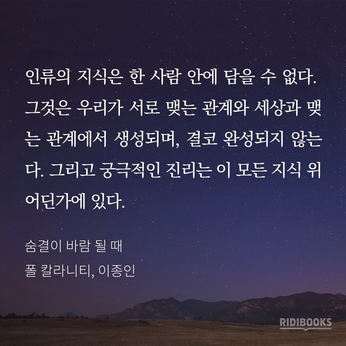 이 책의 저자는 문학을 사랑한, 사람과 환자에 대한 따뜻한 마음을 지닌 의사였다. 신경외과 레지던트로 수료 후에 교수의 길을 걷게 될 예정이었지만 어느 날 이미 그의 몸을 장악한 암을 발견한다. 희망을 잃지 않고 투병생활을 하며 신경외과 레지던트 과정을 수료한다. 하지만 애석하게도 병이 악화되어 끝내 숨결을 거두고 만다. 그의 꿈과 삶, 죽음을 받아들였던 시간이 담긴 책을 남기고.