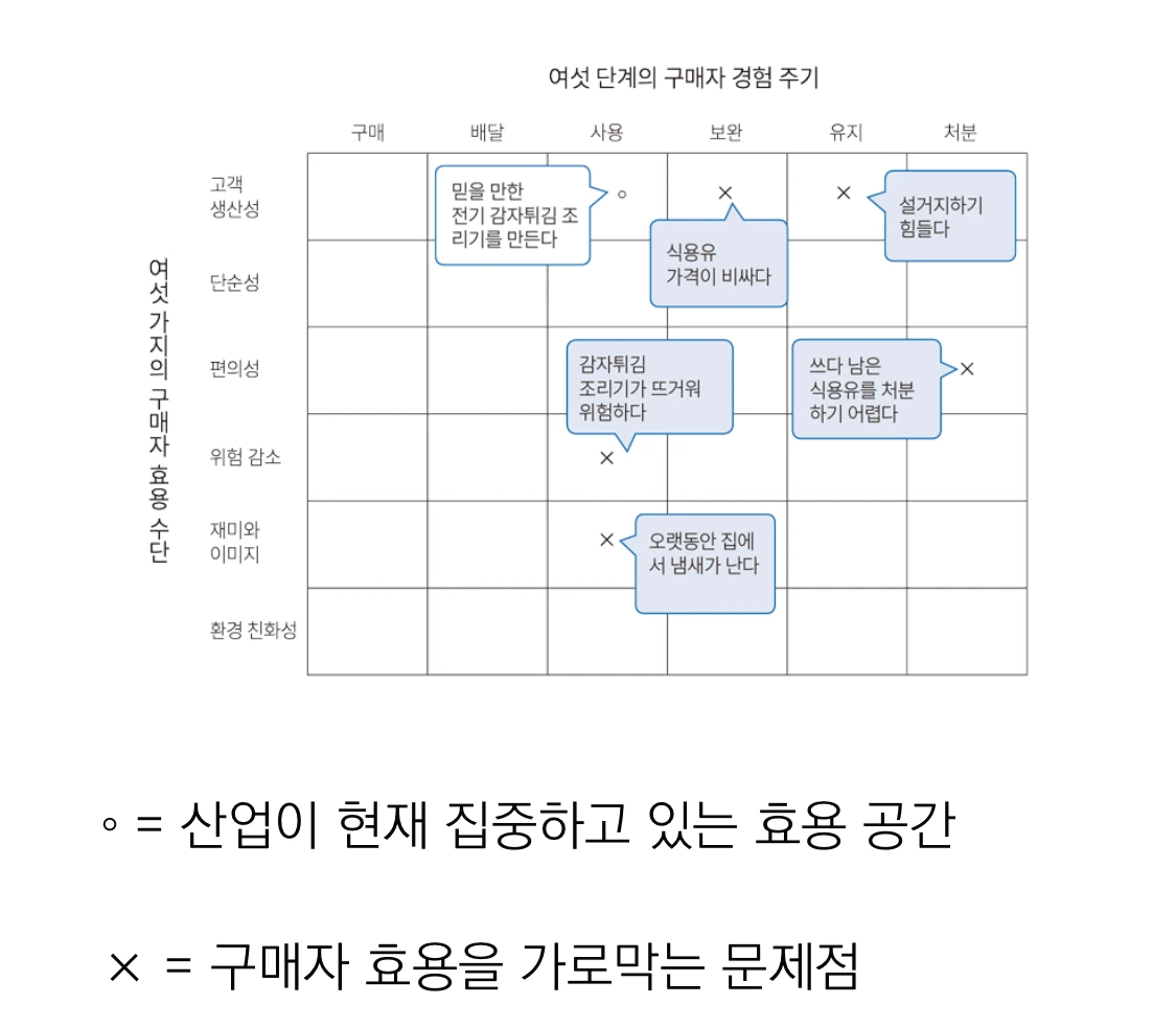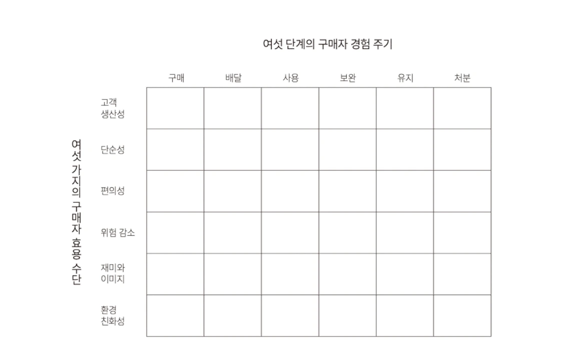사용자의 use case를 6단계로, 얻을 가치도 6가지로 나눠서 표시한다.