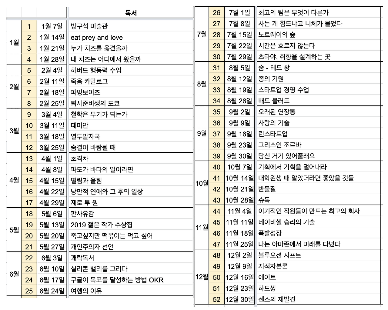 그렇게 2019년 한 해 동안 일주일에 1권씩 읽고 브런치에 독후감을 올리는 프로젝트가 시작되었다.