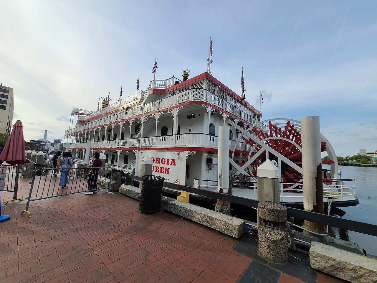 6)River St: 강가 쪽으로 가면 중간중간 아래로 내려가는 길이 나온다. 강가 따라 걷다가 Savannah's Candy Kitchen, River Street Sweets 들어가서 구경도 하고 달다구리 사들고 유람선 같은 배도 구경하고 걷다 돌아왔다. 시티마켓도 구경하고 싶었는데 영업시간이 끝나서 못 갔다.