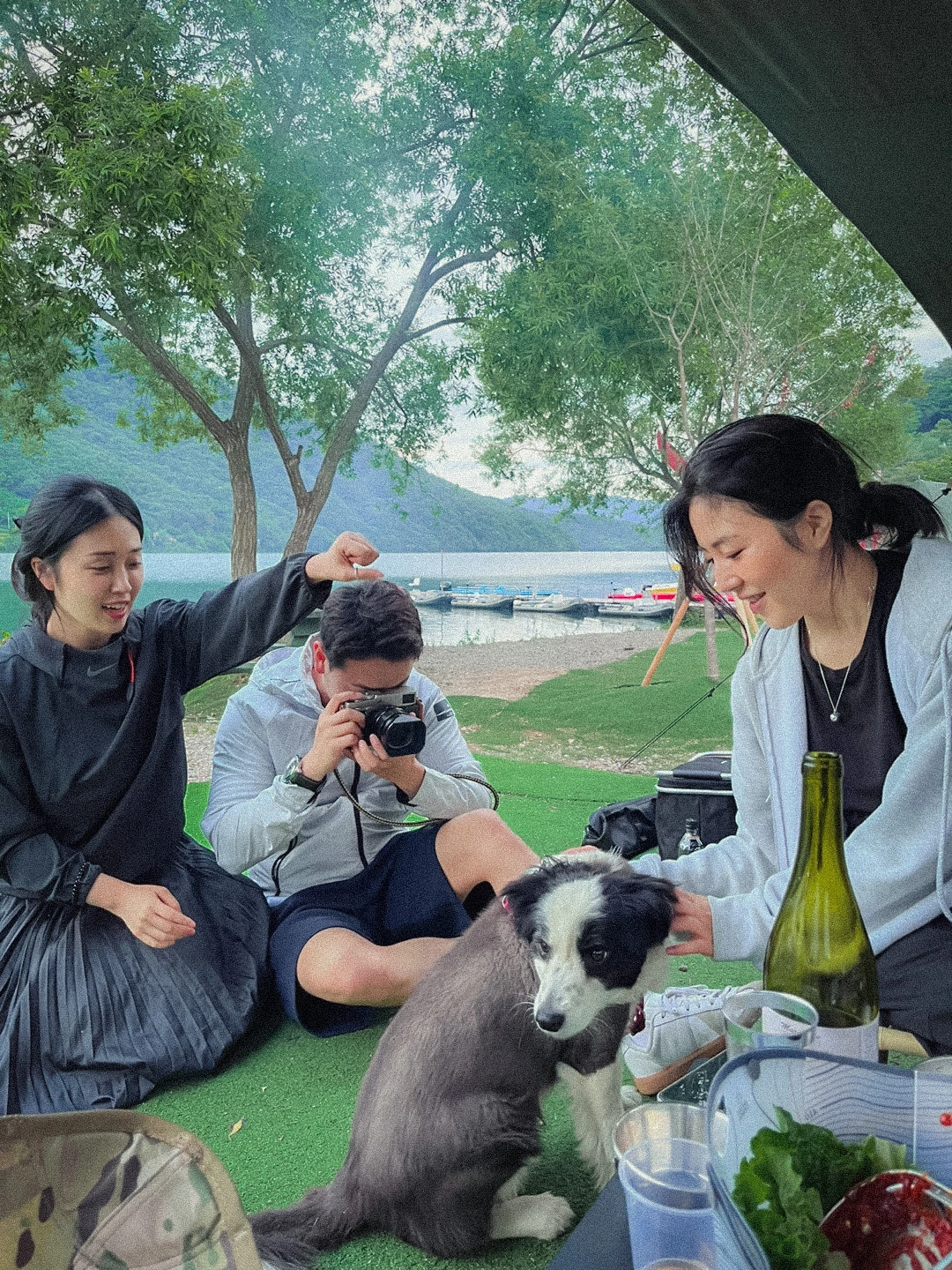 여태 캠핑을 다니면서 캠냥이는 많이 봤는데 캠멍이는 처음이었다. 꽤나 잘생긴 녀석이라 사람들한테 이쁨 받는 게 태생적으로 익숙한 듯 보였다. 이 녀석은 우리에게서 두둑하게 삼겹살을 얻어먹고도 자리를 떠나지 않고 계속 어슬렁거리며 저녁까지 우리와 함께 시간을 보냈다.