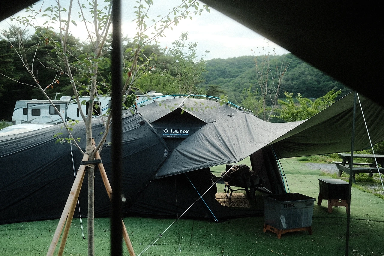 여러 사람들을 재워야 했기에 노나돔에 베드룸까지 챙겨갔다. 이렇게 세팅을 해놓으면 성인 남자 5명이 꽤나 쾌적하고 여유롭게 잘 수가 있다. 물론 텐트 자체의 멋짐은 덤이고 말이다. 노나 타프까지 더한 노나돔 풀세팅의 웅장함은 사진으로는 알 수가 없다. 직접 눈으로 보면 “우와..” 소리가 절로 나오는 구성이다.