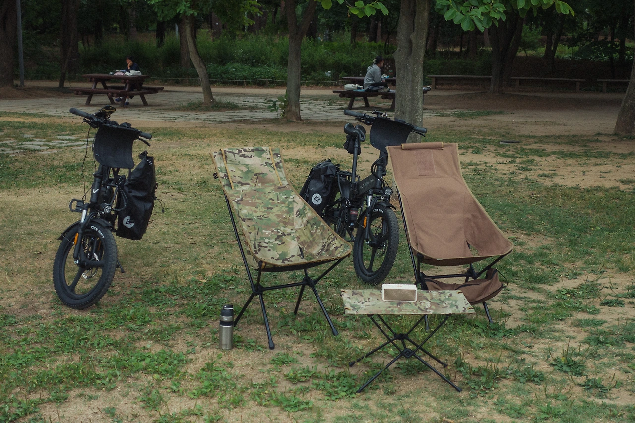 3. 쉬는 날에는 와이프와 함께 자전거에 간단하게 의자와 테이블, 스피커를 담아 서울숲에 가보기도 했다.