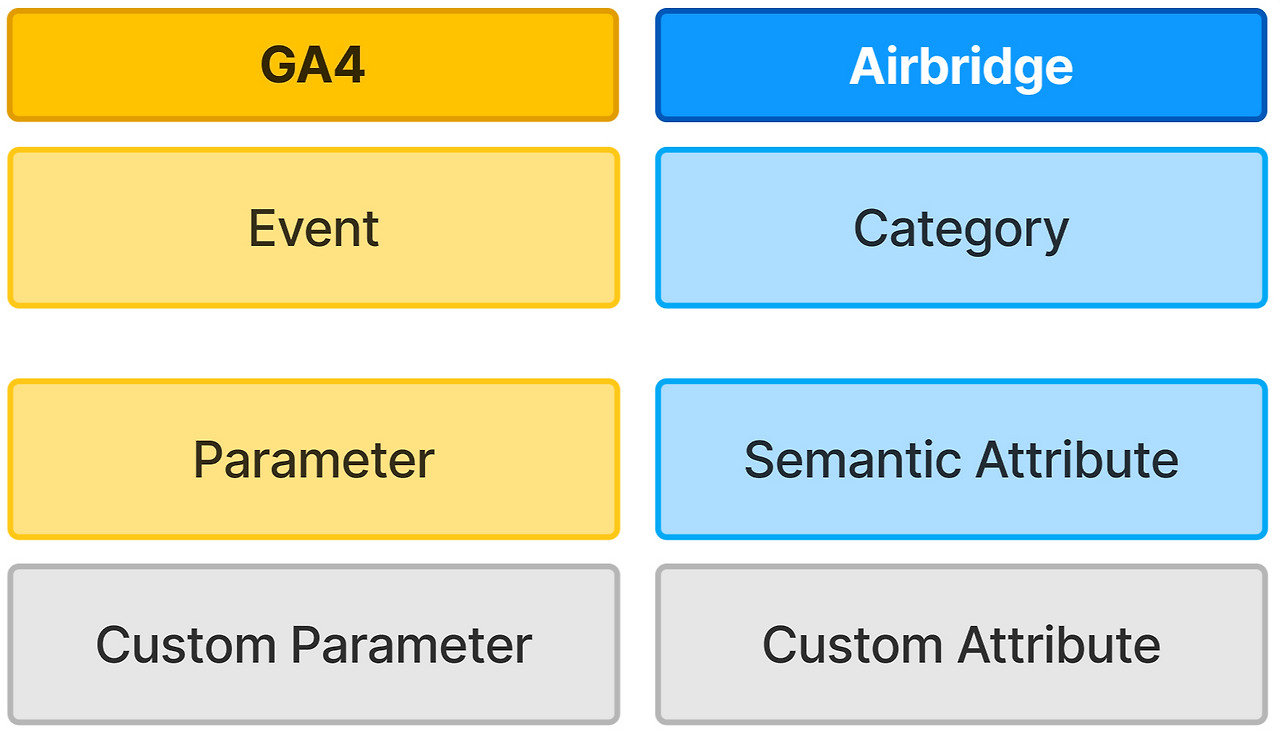에어브릿지의 이벤트 구조는 타 플랫폼에 비해 비교적 복잡하기 때문에 이전에 GA4 및 타 분석 솔루션만을 사용하다 에어브릿지를 처음 접했다면 다소 혼란스러울 수 있습니다. 저 역시 꽤 헤맸던 것 같습니다.