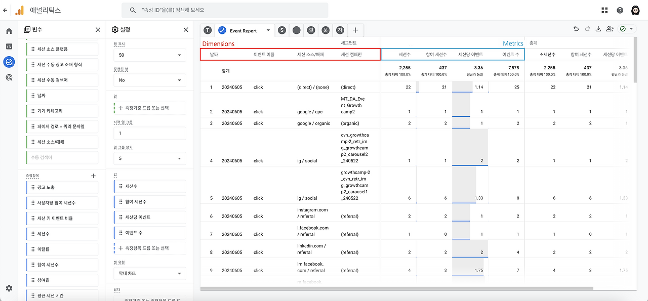 (GA4의 Metrics & Dimension에 대한 기본 개념이 궁금하신 분들은 관련 자료를 참고해 주세요)