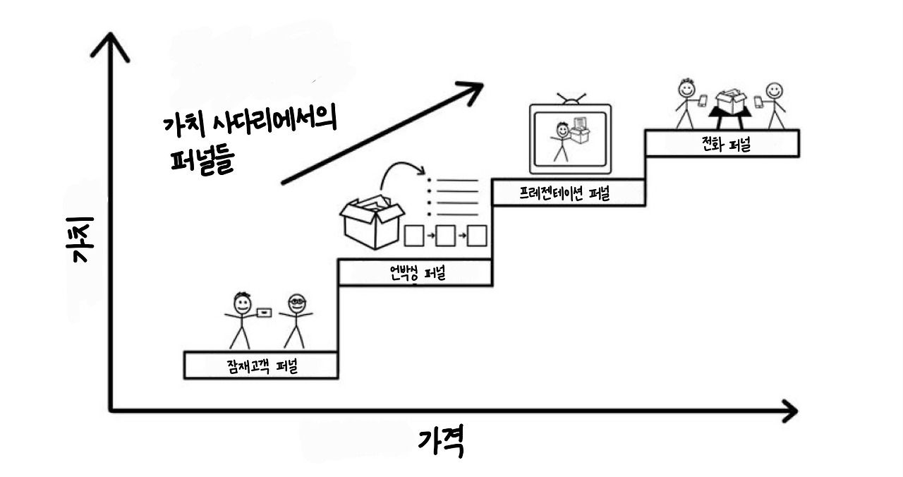고객 한 사람이 굴곡선(‘잠재고객 → 가망고객 → 신규고객 → 기존고객 → 충성고객’)을 매끄럽게 오를 만한 나만의 가치 사다리를 그려야 한다. 그리고 중간 단계나 마지막 단계 중 하나를 골라 단 하나의 퍼널에만 초점을 맞추는 것이 중요하다.