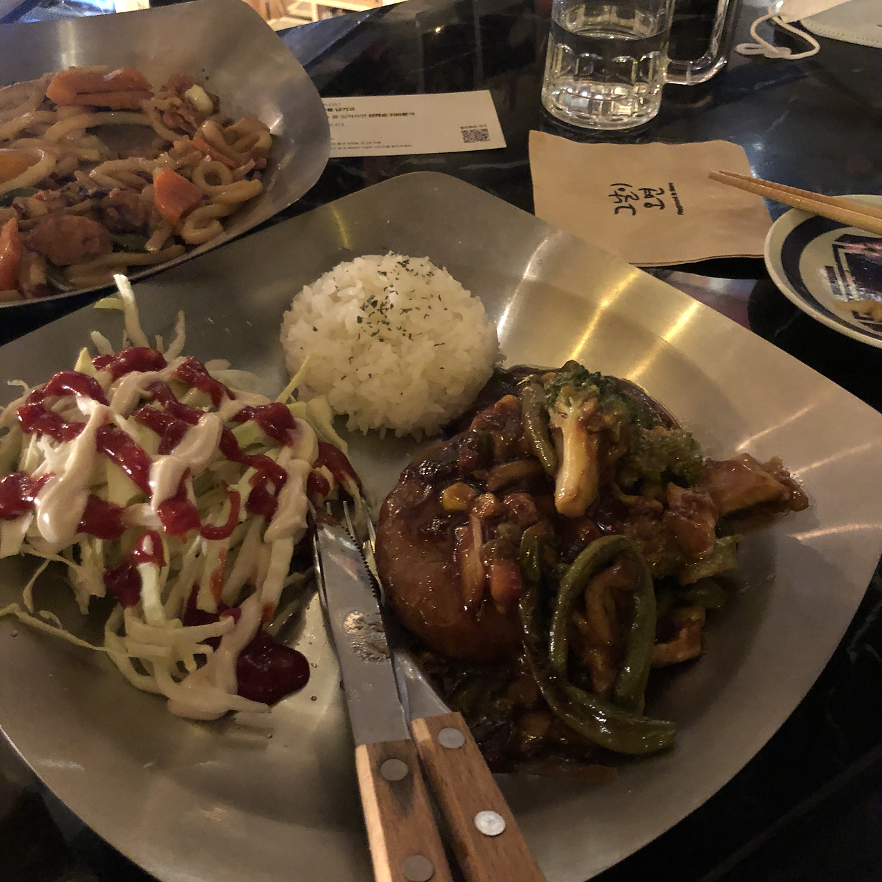 비건푸드인 줄 몰랐다면 눈치 못 챘겠다 싶을 정도로 자극적이고 맛있다. 대체고기(콩고기) 질감도 너무 몰캉몰캉하지 않고, 적당히 빠짝 조리되어 식감도 좋았다. 볶음우동에도 야채도 다양하게 들어있었지만, 가격 대비 엄청 풍부한 편은 아니었다.